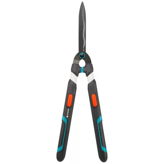 Foarfecele pentru tăierea gardurilor vii GARDENA TeleCut are caracteristici extrem de practice și vine cu o garanție incredibilă de 25 de ani. Mânerul telescopic prelungibil al TeleCut poate extinde raza de acțiune cu până la 20 cm. Astfel eviți întinderea inutilă sau utilizarea scării. În ciuda prelungirii, ai la dispoziție toată puterea. Muchiile zimțate ale lamelor taie foarte precis și eficient și suprafețele mai mari. Acest tip de șlefuire asigură că frunzele și crengile nu se împrăștie în timpul tăierii, ci rămân în zona de tăiere. Confortul este sporit și de faptul că stratul antiaderent al lamei nu permite lipirea murdăriei. Pe lângă funcționalitatea excelentă, TeleCut impresionează și la atingere. Mânerul ErgoTec este cu adevărat ergonomic și oferă o priză bună. Datorită amortizării excelente, rezistența nu îți deranjează munca, protejează articulațiile și mâna; te simți mai puțin obosit dacă lucrezi mai mult timp. Acest lucru se datorează și greutății reduse a mânerelor din aluminiu.
