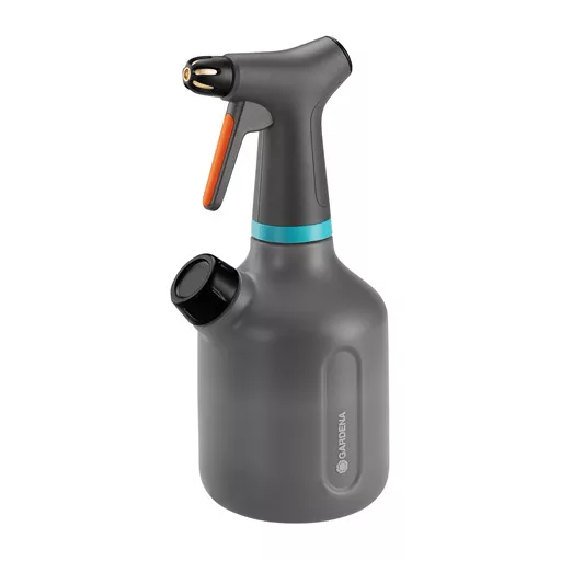 Pulverizatorul cu pompă GARDENA de 1 litru are numeroase calități excelente care te ajută să uzi plantele și florile atât în casă, cât și în jurul casei. De exemplu, orificiul secundar de dozare prevăzut cu capac gradat, cu funcția 3-în-1, care atrage atenția încă de la prima vedere. Prin acest orificiu suplimentar poți umple ușor pulverizatorul cu pompă, poți adăuga cantitatea potrivită de soluție nutritivă și apoi îl poți goli. Nu trebuie să desfaci capul pulverizatorului, astfel mâinile rămân uscate. La utilizare, fiecare apăsare a pompei asigură o udare uniformă, cu rază mare de acțiune. Funcția încorporată la 360° garantează că nu va aspira aer, chiar dacă ții pulverizatorul înclinat. La udare poți alege între jet complet și pulverizare fină, deoarece duza robustă și de înaltă calitate din alamă se reglează ușor, adaptându-se nevoilor fiecărei plante. În plus, poți vedea întotdeauna nivelul de umplere în pulverizator, deoarece rezervorul este realizat din material transparent. Pulverizatorul cu pompă de 1 litru îl vei îndrăgi imediat datorită ergonomiei excelente, încă de când începi să îl folosești.