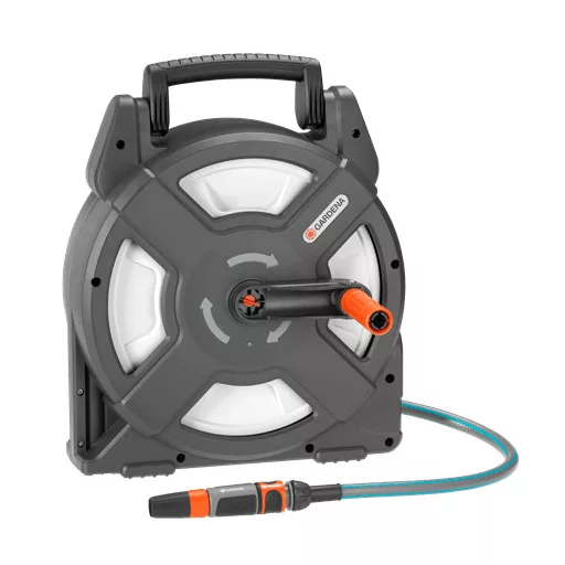 Setul cu tambur de furtun GARDENA poate fi depozitat ordonat și este ușor de transportat. Dimensiunea și greutatea tamburului de furtun sunt mici, astfel încât este potrivit nu numai pentru udarea grădinilor și teraselor de dimensiuni mici, ci și pentru camping și alte activități de recreere. La tamburul de furtun este inclus un furtun de conectare de 1,5 m, elementele necesare ale sistemului GARDENA precum și un cap de stropire pentru curățare.