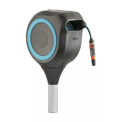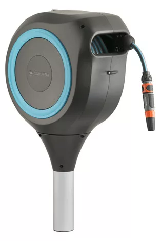 Cutia pentru furtun de grădină GARDENA RollUp M nu doar asigură depozitarea sigură și economisitoare de spațiu a furtunului de grădină, dar te va cuceri și prin cât de ușor poți uda grădina ta de dimensiuni medii. Practica cutie pentru furtun este fixată pe un țăruș metalic rezistent, introdus în pământ în locul de tine ales, într-un bordură de flori sau pe gazon. Cu ajutorul unei tije de înfiletat poți înșuruba și mai ușor țărușul metalic în sol. Pentru utilizare, pur și simplu trage furtunul lung de 20 m la lungimea dorită și poți începe udarea. Datorită punctelor scurte de blocare integrate, manevrarea furtunului de grădină nu a fost niciodată atât de simplă. De îndată ce oprești tragerea furtunului, blocarea se activează automat la lungimea dorită. Cutia inovatoare pentru furtun se poate roti la 360°, oferind astfel flexibilitate maximă pentru udarea grădinii. Cutia pentru furtun urmărește mereu mișcările tale, astfel încât poți ajunge ușor în fiecare colț al grădinii fără ca furtunul să se îndoaie sau să se răsucească. În plus, această cutie pentru furtun îți economisește efortul de a te apleca sau întinde obositor, iar mâinile tale nu vor fi ude sau murdare la înfășurarea furtunului. Printr-o scurtă tragere a capătului furtunului se dezactivează blocarea, iar datorită unui arc din oțel integrat, furtunul de înaltă calitate se înfășoară complet automat și fiabil. Ghidajul practic pentru furtun previne încâlcirea acestuia. Tehnologia inovatoare RollControl asigură retragerea sigură, controlată și ușoară, fără a îndoi furtunul. Materialele de înaltă calitate, rezistente la UV și la îngheț, oferă durabilitate și utilizare fără întreținere. Cutia pentru furtun este extrem de compactă și proiectată cu stil, integrându-se ușor în orice grădină. În plus, cutia pentru furtun este ajustată la înălțimea cositoarelor robot GARDENA, astfel încât gazonul din jurul cutiei să poată fi întreținut corespunzător. Cutia pentru furtun de grădină include un furtun de 20 m, toate materialele de montaj, toate elementele de conectare originale GARDENA necesare, un furtun flexibil de legătură și un pulverizator cu două capete de stropire diferite. GARDENA oferă 5 ani garanție pentru cutia pentru furtun RollUp M, care este întotdeauna gata de utilizare.