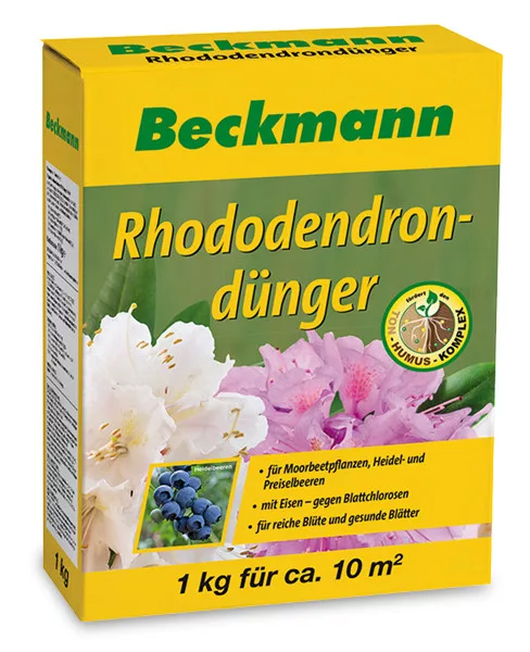 Solul sănătos, ușor acid, cu un conținut bun de humus și îngrășământul organic-mineral Beckmann pentru rododendron, azalee, hortensie și afin sprijină creșterea adecvată și înflorirea abundentă a rododendronilor și a altor plante de turbă. Conține toți nutrienții principali importanți și, desigur, oligoelemente fixate. Fierul și magneziul îmbunătățesc culoarea frunzelor și previn cloroza. Cloroza este îngălbenirea care începe între nervuri și este adesea cauzată de lipsa unor minerale precum fierul sau magneziul.