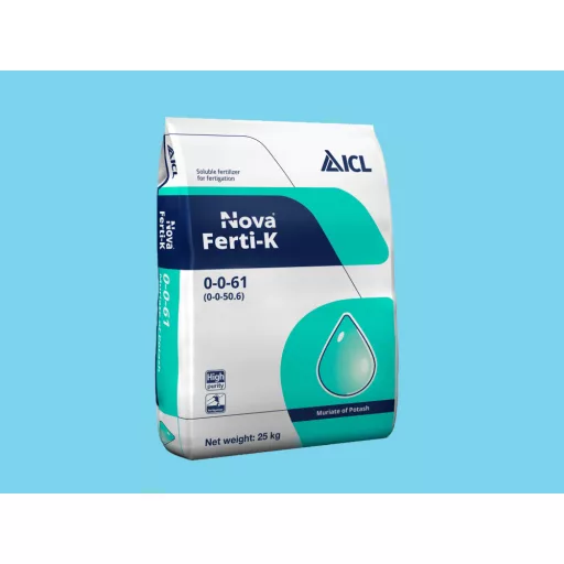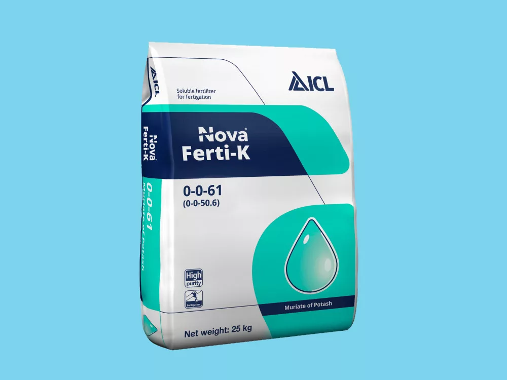Nova Ferti-K este un îngrășământ potasic fără azot, care este un element important în dezvoltarea plantelor și a fructelor. Îmbunătățește culoarea, dulceața și conținutul de ulei al fructelor. Clorul, împreună cu potasiul, joacă un rol important în reglarea presiunii osmotice generale dintre celulele vegetale, participând direct la reglarea deschiderii/închiderii stomatelor.
