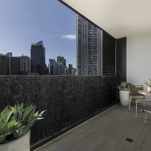 Această perdea artificială în stil minimalist are un aspect stilat și oferă în același timp o excelentă protecție a intimității.