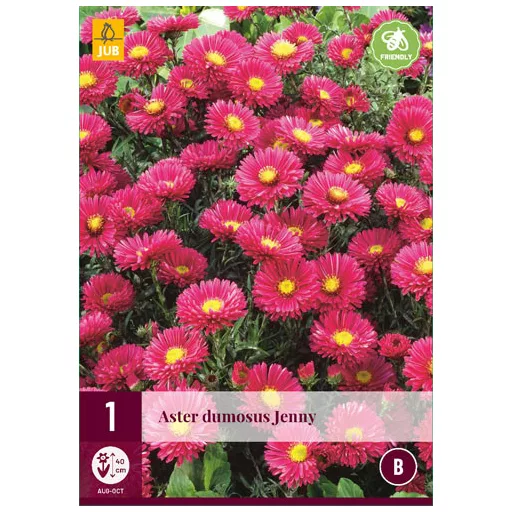 Aster Jenny crește la aproximativ 30-40 cm înălțime. Florile de culoare roșie înfloresc din august până în octombrie. Această specie face parte din grupul Dumosus, dezvoltându-se în formă de pernă. Uneori înflorește atât de abundent încât întreaga plantă este acoperită de flori. Înflorirea începe în august și durează până în octombrie. Florile sunt vizitate de fluturi. Jenny poate fi plantată și în ghiveci. Crește bine în sol de grădină normal. Poziția însorită este de preferat, dar se permite și puțină umbră. Toleră o oarecare secetă.
