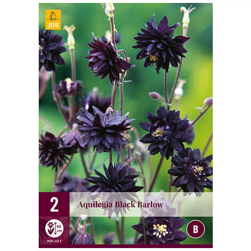 Aquilegia (Columbine) Black Barlow înflorește din mai până în iunie cu flori aproape negre. Aquilegia este îndrăgită și pentru că se însămânțează singură. Se poate combina frumos cu alte plante perene roz sau violete. Aquilegia preferă locurile însorite, dar deseori se descurcă bine și la semi-umbră. În principiu îi convin toate tipurile de sol, cu excepția solurilor argiloase (grele). Înălțimea Aquilegia Black Barlow este de 50-60 cm.