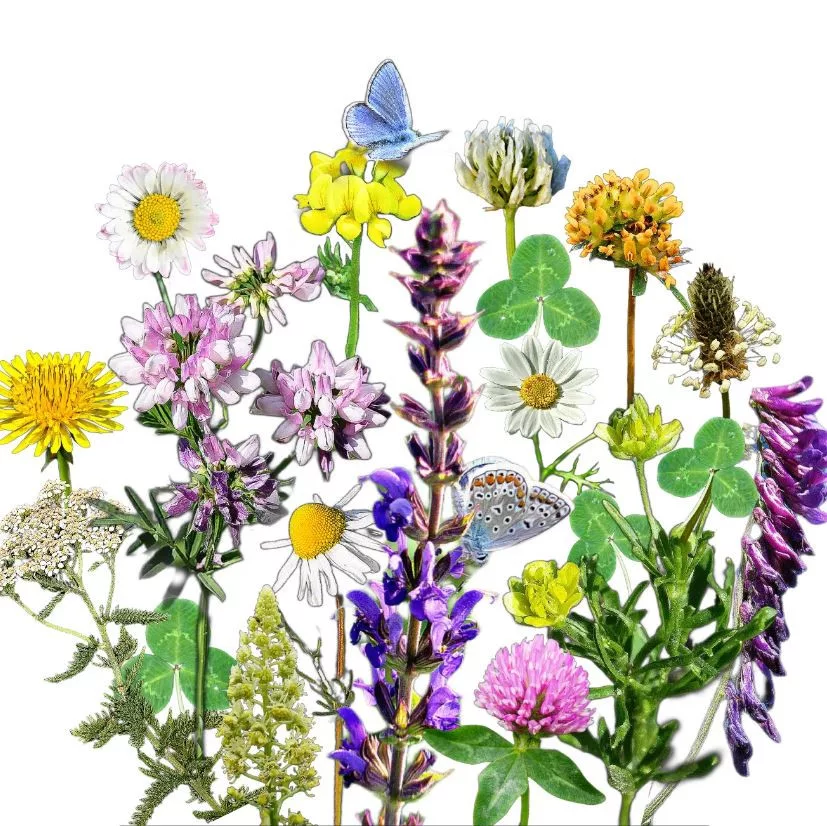 Astfel succesul este garantat și în rândul polenizatorilor: coada-șoricelului, salvia, coroana pestriță, păducelul (Anthyllis), pelinul (Vicia ?) și iarba bumbi (Vicia villosa) sunt foarte populare în rândul fluturilor, în timp ce trifoiul alb, păpădia, traista-ciobanului lanceolată, mușețelul să ofere hrană polenizatorilor cu limbă scurtă, precum albinele domestice; trifoiul roșu este preferat în special de albinele cu limbă lungă, precum bondarii. Margareta, prin înflorirea sa lungă, chiar din februarie până în noiembrie, este o sursă importantă de polen.