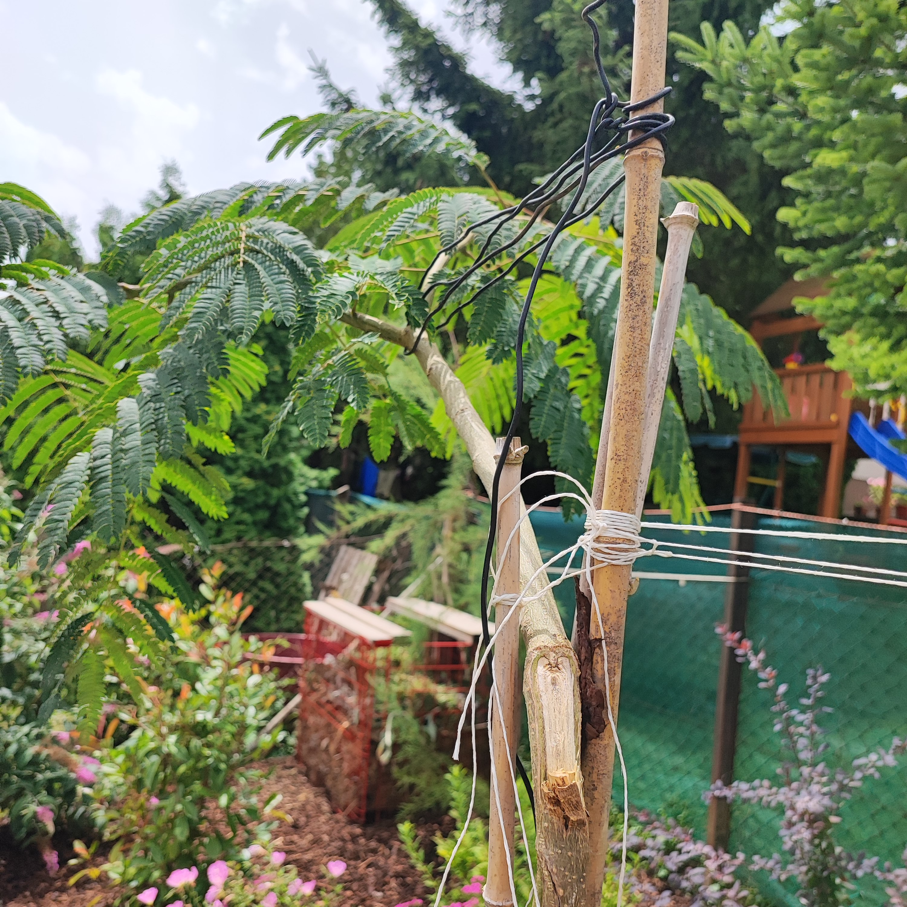 3 éves selyem akác egyik ágát letörte a szél. Most elég egy oldalon van a két ága. Hogy lehetne megmenteni, hogy szép fa lehessen belőle?