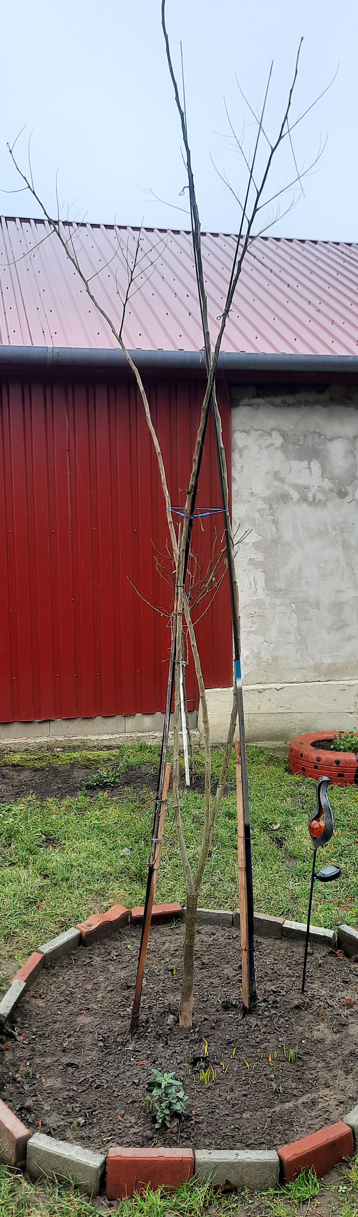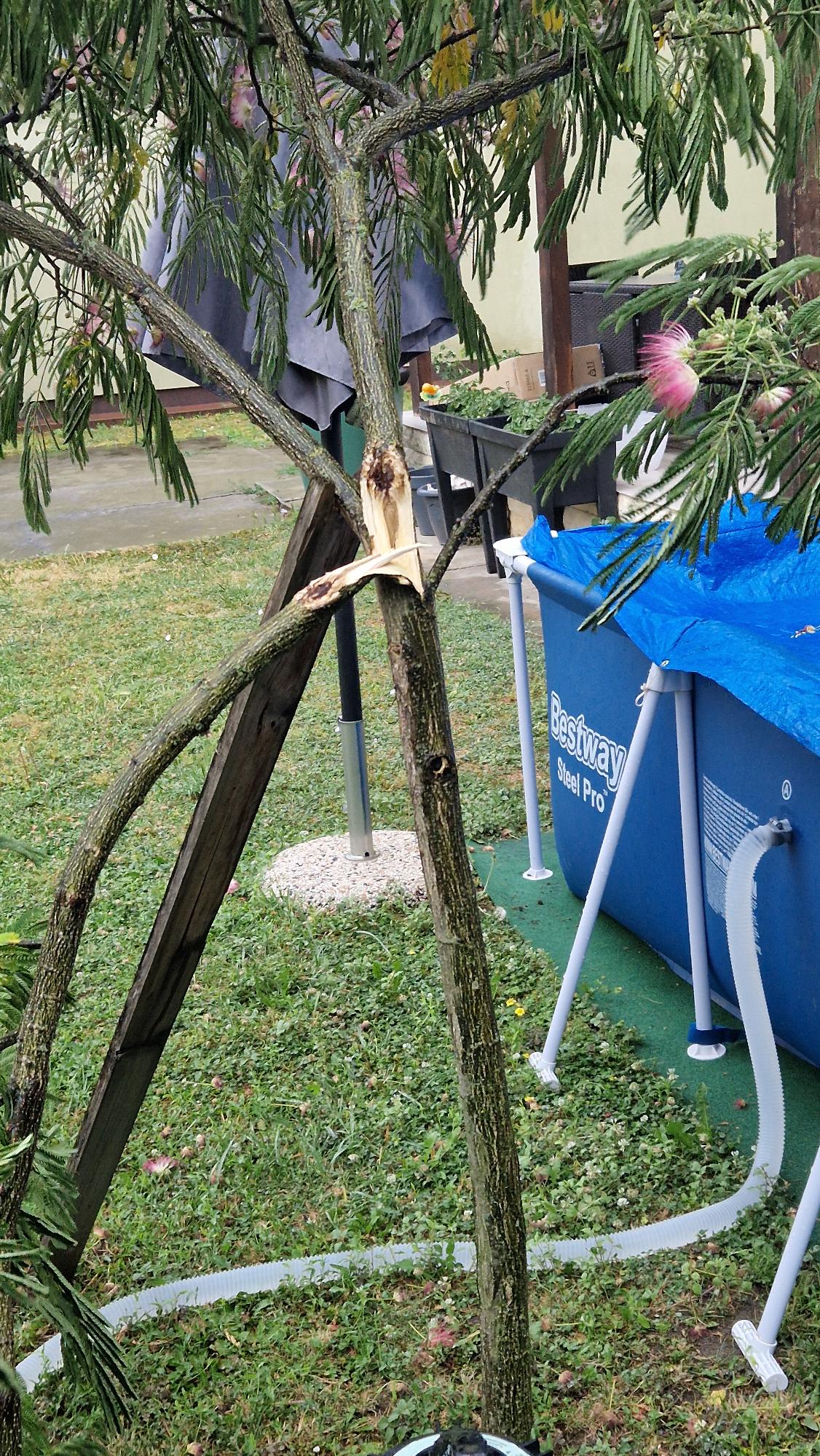 A tegnapi vihar letörte a 4 éves fám egyik fő ágát. A gond az, hogy így csak az egyik oldalon van ága. Így is ki kellett támasztani, mert nem egyenes a törzse, most attól félek, hogy kidől egy következő viharnál. Ráadásul olyan kis gyenge a törzse még mindig, lassan az ágai vastagabbak.