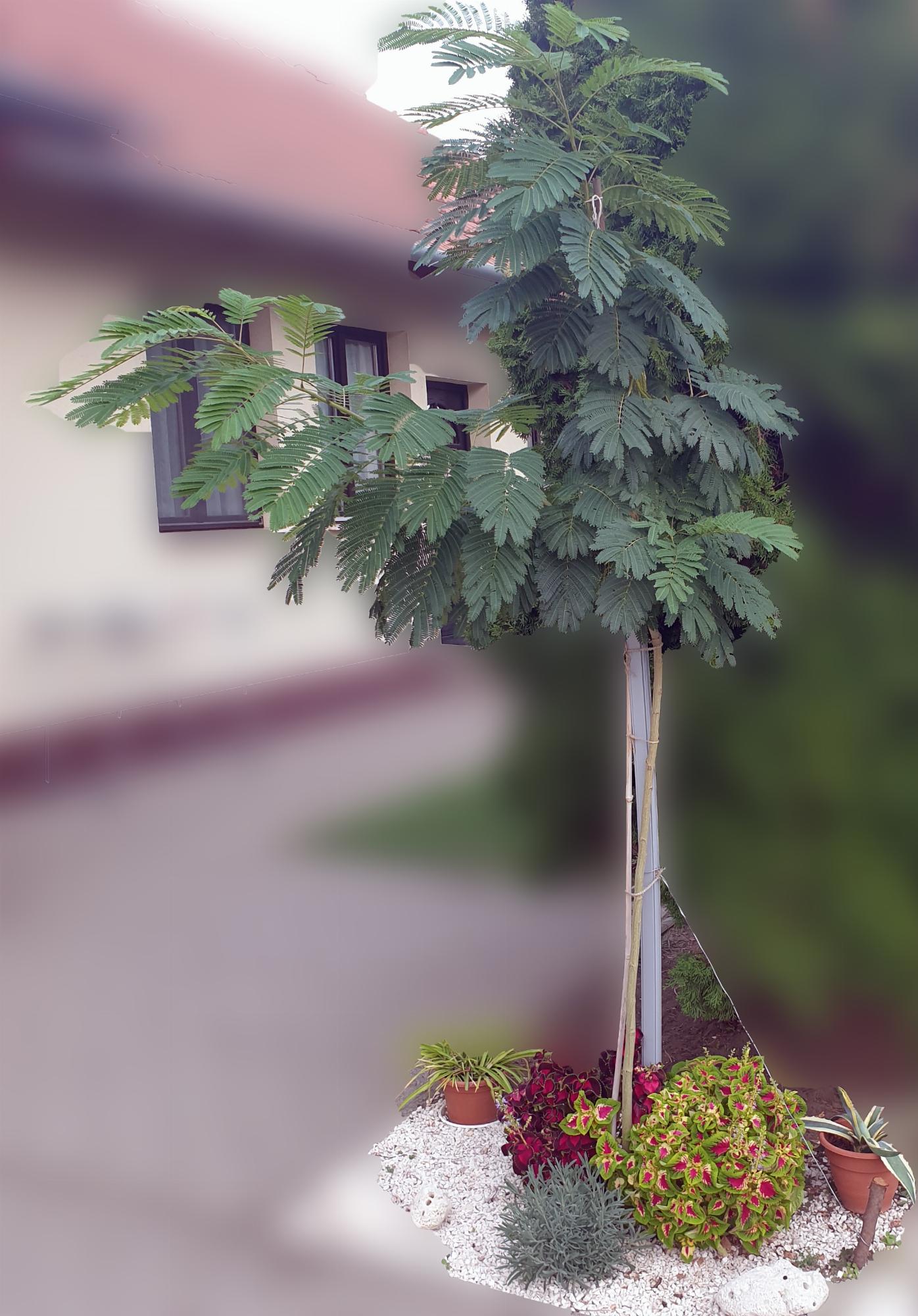 Egy kis csemetéből a nyár folyamán így fejlődtek selyemakácaink. Nem gondoltuk, hogy megmaradnak. Hogyan érdemes tovább gondozni, kell-e metszeni? Érdemes-e kiszedni az egyiket a távolság miatt? Köszönöm! Tóth Éva