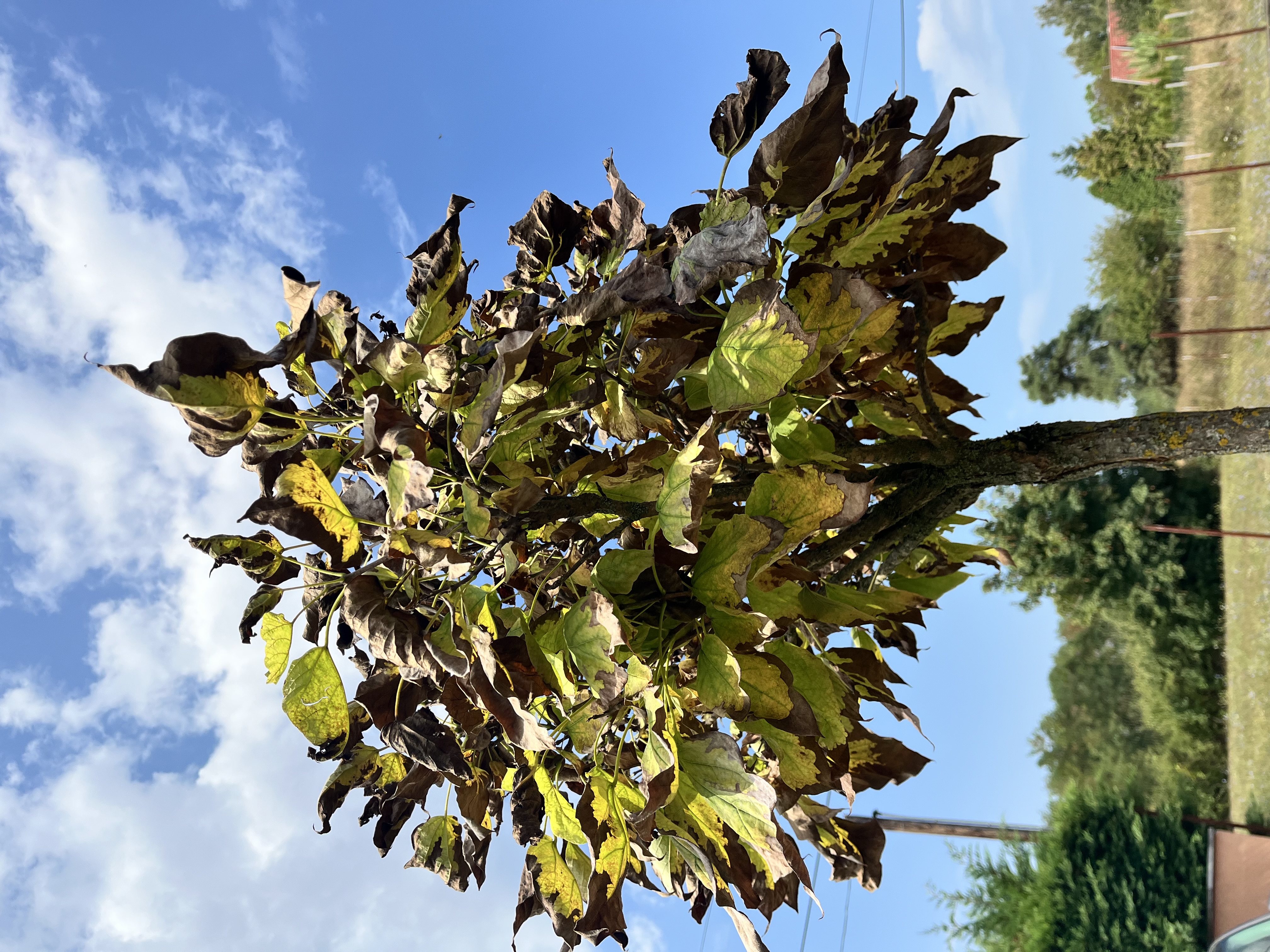 Szép napot! Azzal a kérdéssel fordulnék önökhöz, hogy kb 1 hónapja barnás,ragacsos levet eresztenek a levelek.(szivarfa) illetve olyan,mintha a lombkorona belseje kezdene elszáradni. Mellékletben csatolom a képeket. Mivel tudnám ezt kezelni? Ez milyen betegség lehet? Segítségüket előre is köszönöm!