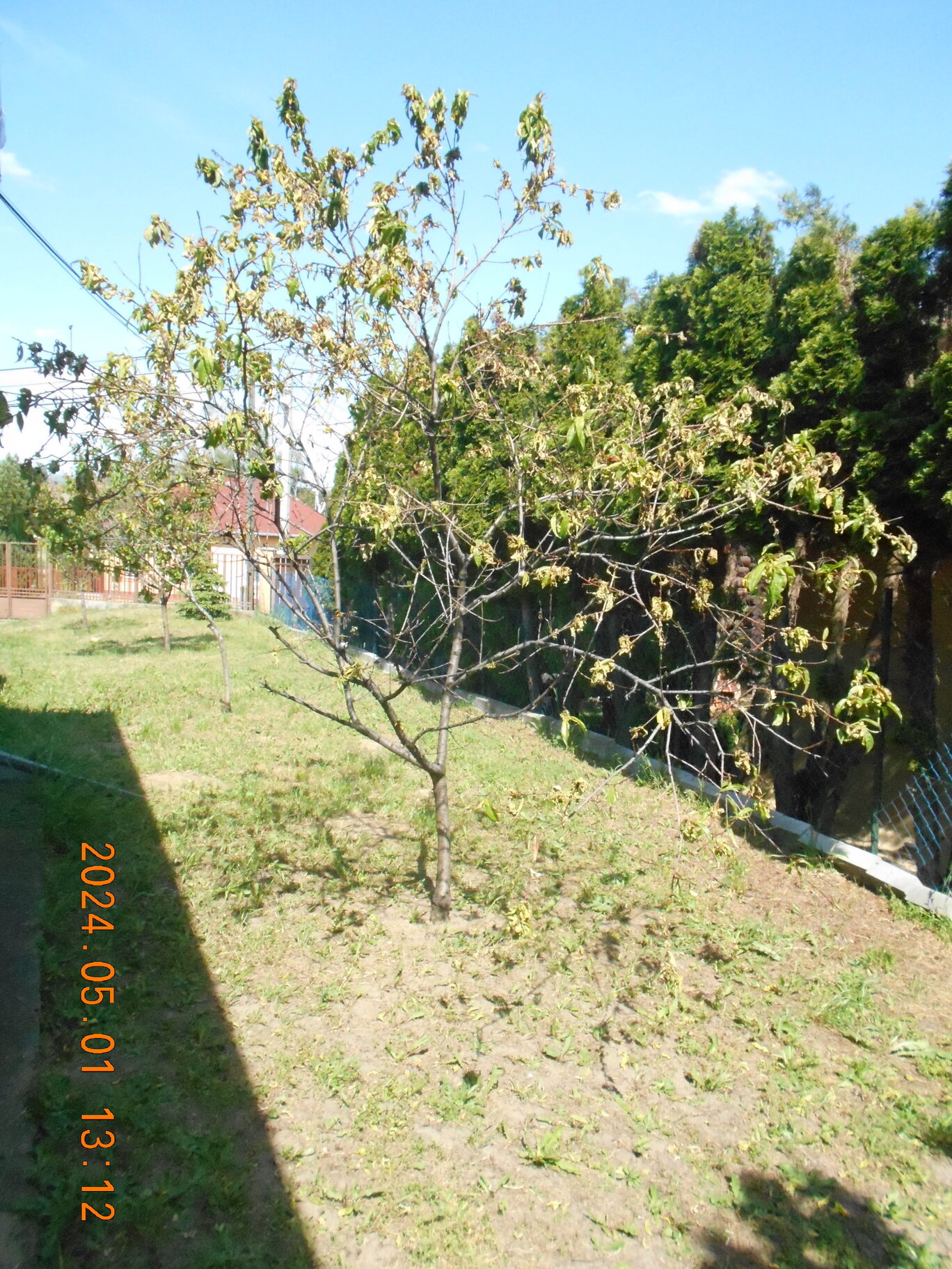 Megjegyzem, hogy 4 db fa a kert egy oldalán, egy területén helyezkedik el és kb. 5-6 éve lettek elültetve facsemetéről és kb. 3 éve a virágok tavasszal lefagynak, gyümölcsöt nem hoznak, viszont a levelek az idén váltak ilyen elszáradóvá.