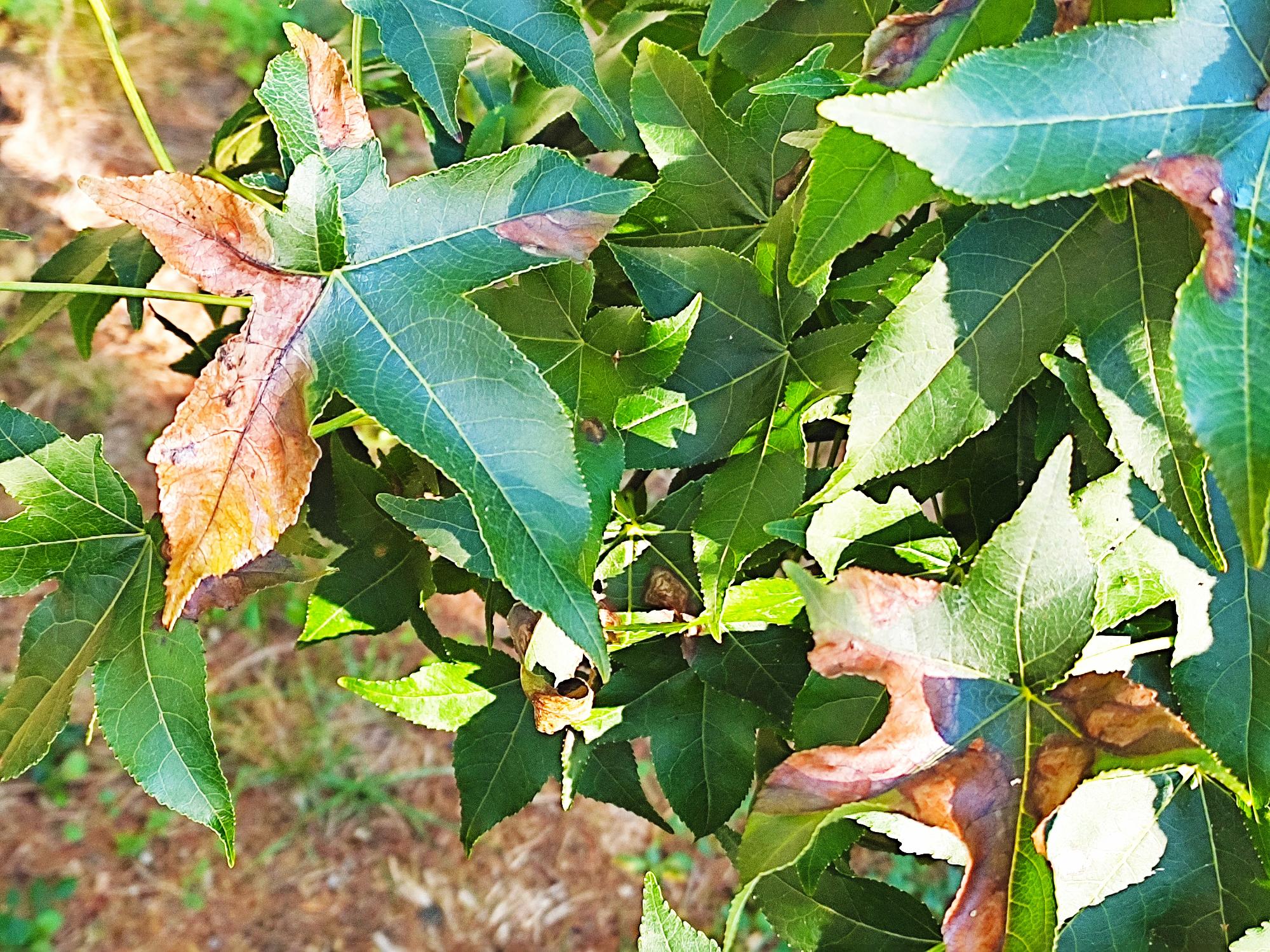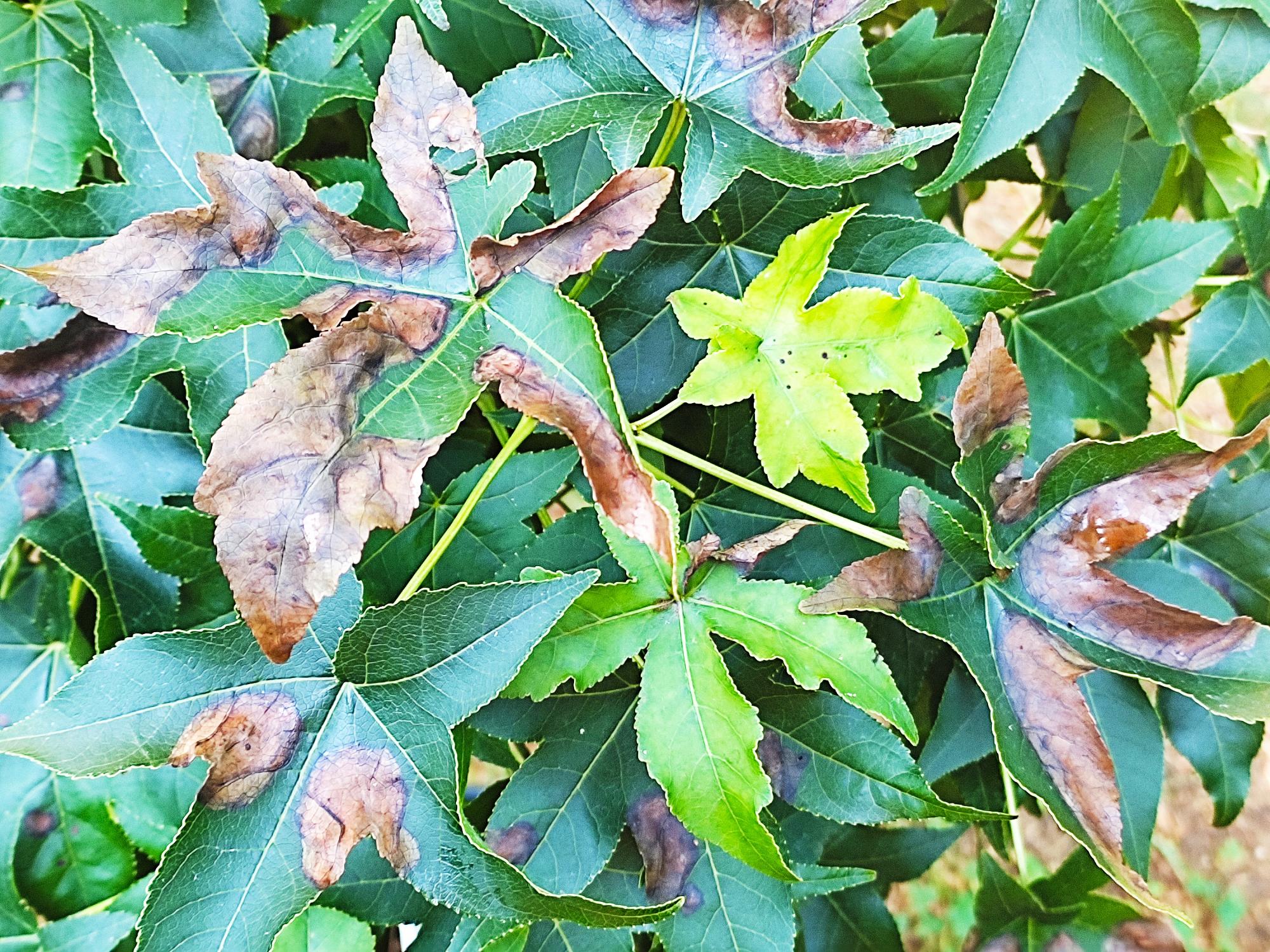 Az ámbrafa leveleinek foltosodásának több oka is lehet. Most leginkább a légszárazságra vagy napégésre lehet gyanakodni. Erről ír ez a cikkünk: https://www.gazdabolt.hu/cikkek-hirek/cikk/2025.-evi-16.-novenyvedelmi-felhivas