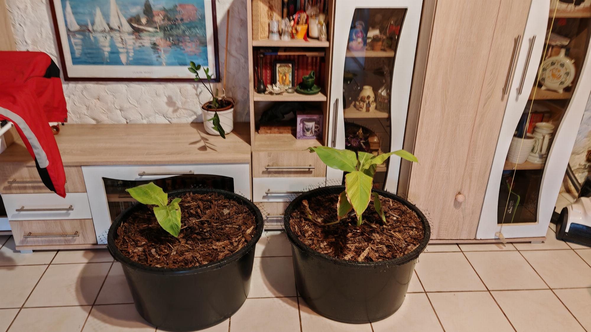 Januárban vásárolt Musa daijo ,bent 3. Kép meg teljesen szép volt . Májusba került kiültetésre de az összes levelet eldobta hozott újat de azok betegek voltak fekete pöttyös itteni tanácsra réz szulfát permetezést kapott egy ideig jól volt de utána megint betegnek látszott 2 hete áttettem egy 80l ládába inkább akkor legyen ebben majd télen bent ,jelenleg most kint van félárnyekos helyen de nem igazán változott az állapota , menthető még? Látszik hogy hozna új levelet de napok oda mm sem jőtt . Másik két banán fám szélén növöget. Ez az egy ami nem akar .