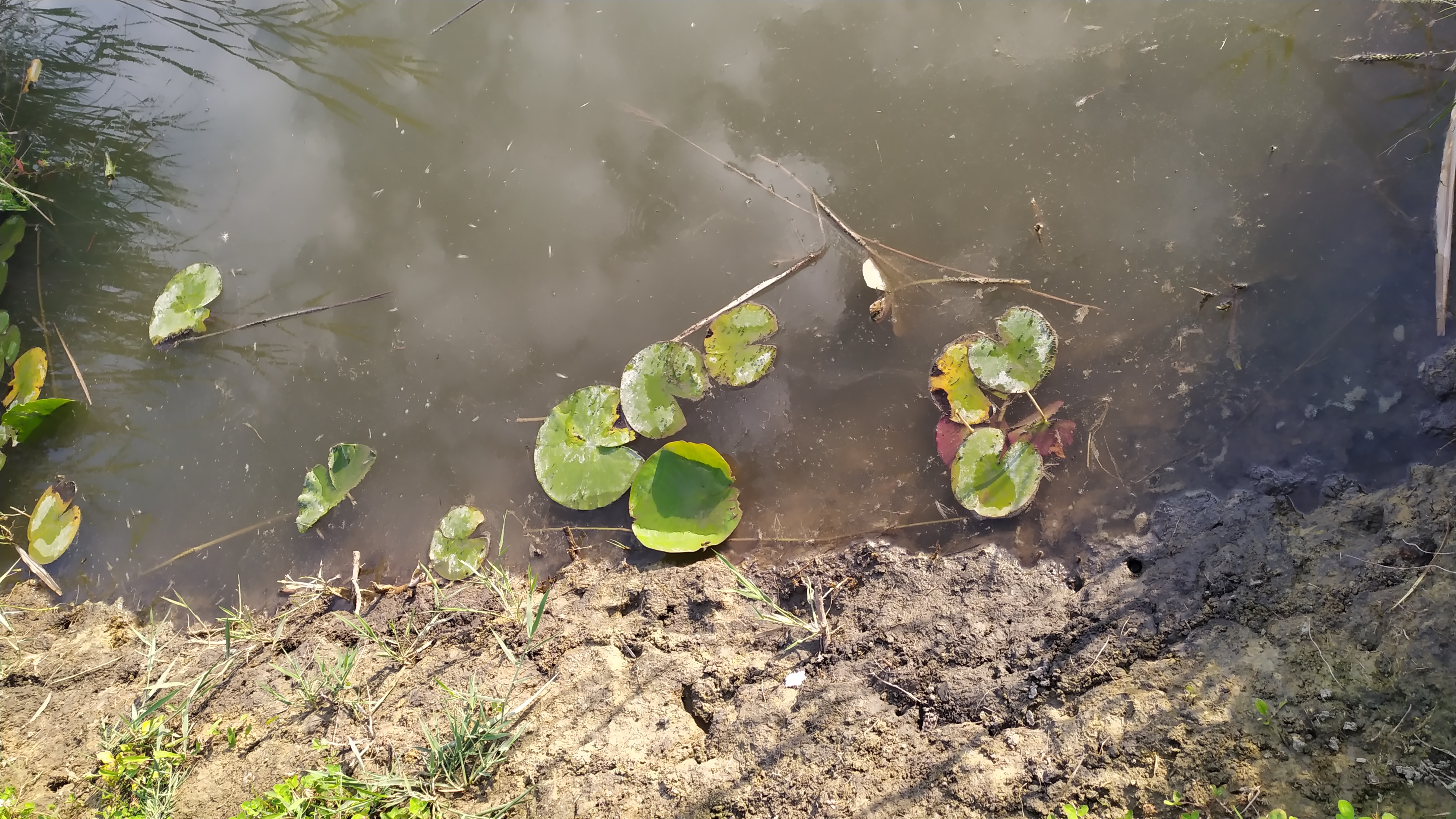 Tegnap arra lettünk figyelmesek, hogy szinte mindegyik tavirózsa és levelei eltűntek.. A tó másik részén megtaláltuk őket, úsztak a víz színén, elválva.. A virág fejek is, és a levelek is.. A vágásokból nem jöttünk rá, hogy hal rágta-e esetleg el, vagy elszakadtak. Ez utóbbira azért gyanakszunk, mert az esőzések miatt hirtelen nagyon megnőtt a víz magassága (30-40 centit biztosan), és lehet, hogy nem bírták?