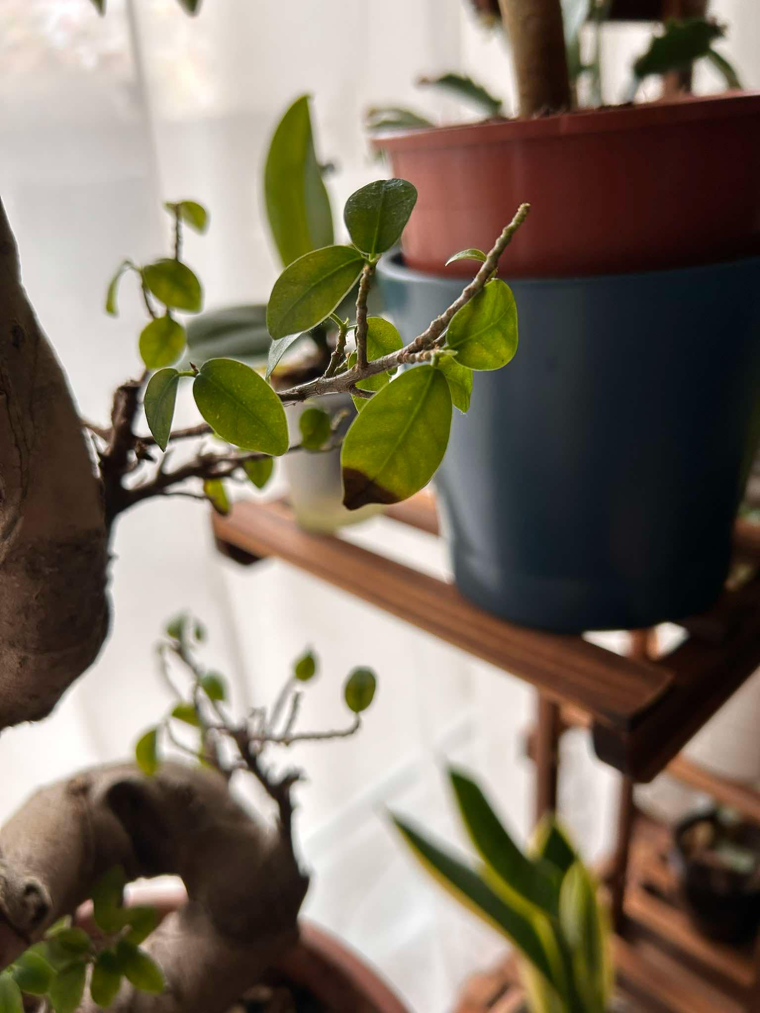 A bonsai-ommal kapcsolatban szeretnék segítséget kérni Önöktől. Először szinte teljesen megkopaszodott, valószínűleg nyáron túlöntözéstől, utána a problémát orvosolva nagyon sok új levelet kezdett hozni, de azóta több levél bebarnul majd elszárad/leesik és nem akar rendesen belombosodni/megerősödni a növény. Nagyon óvatosan locsoljuk heti 1x, fényt kap bőven, hatalmas ablak előtt lakik radiátortól messzebb (min. egy méter). A bonsai tavasszal lett átültetve bonsai földbe (utána még hónapokig nagyon szépen fejlődött).
