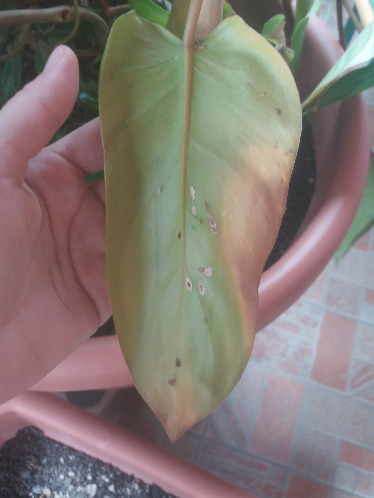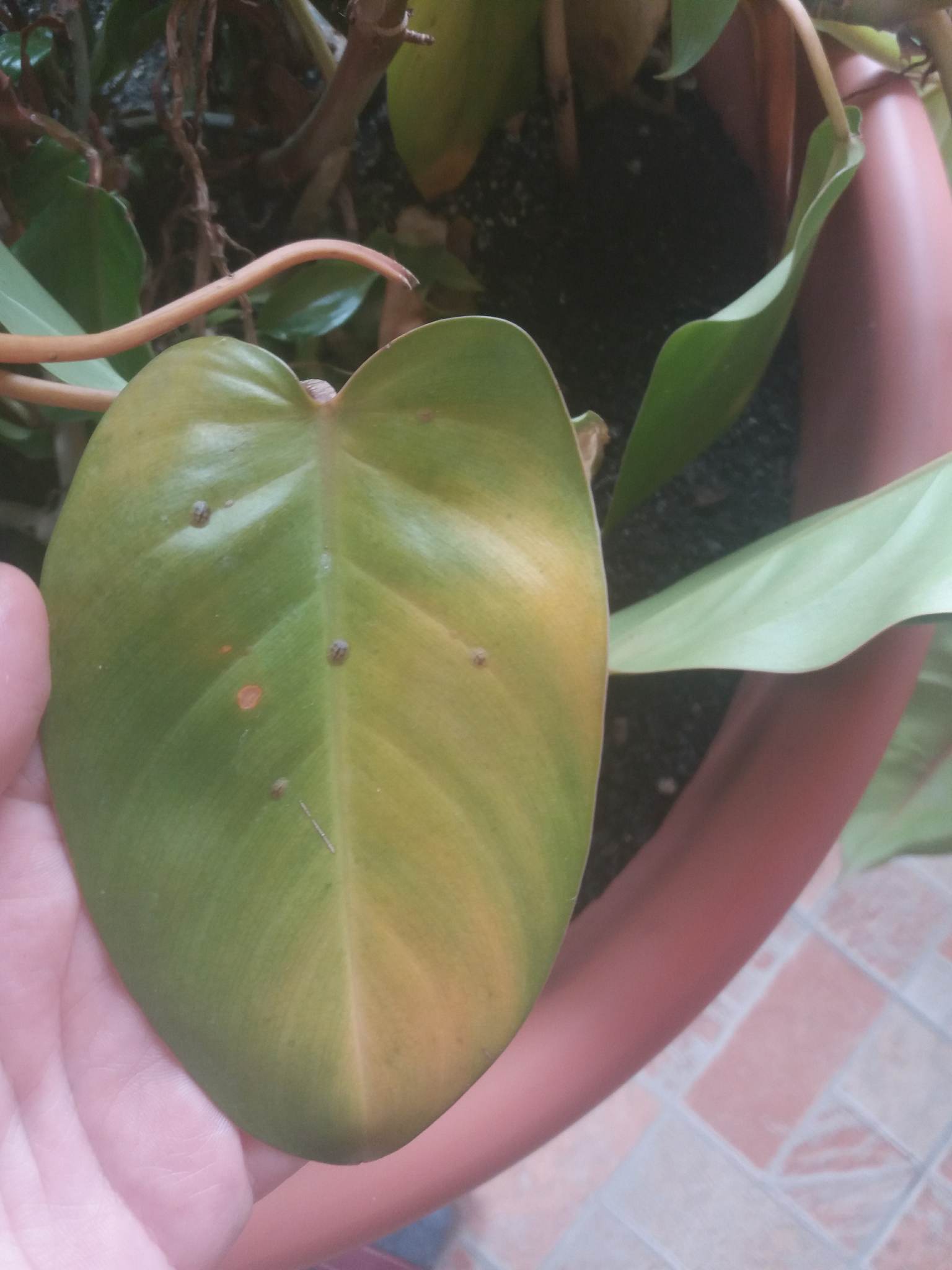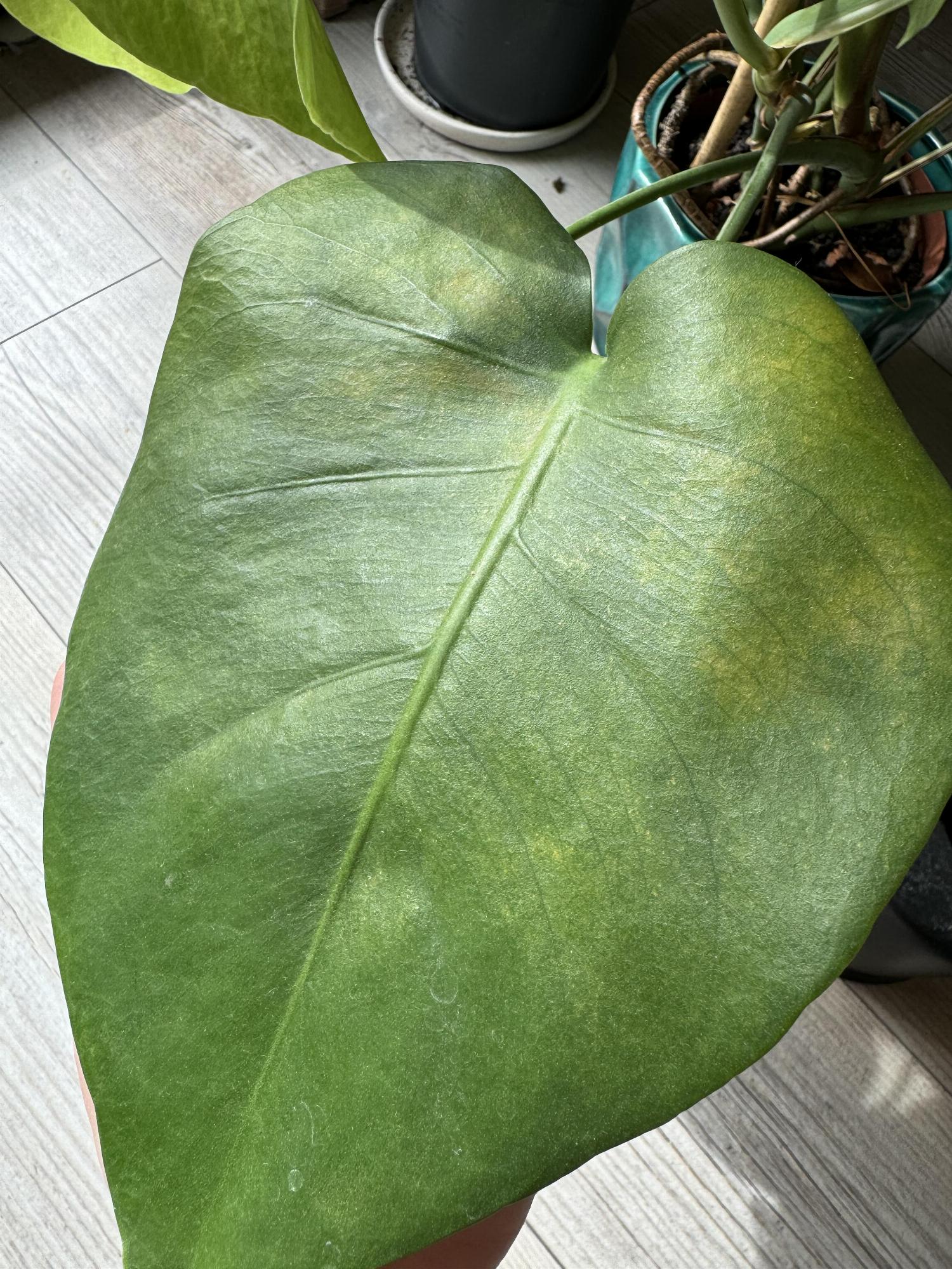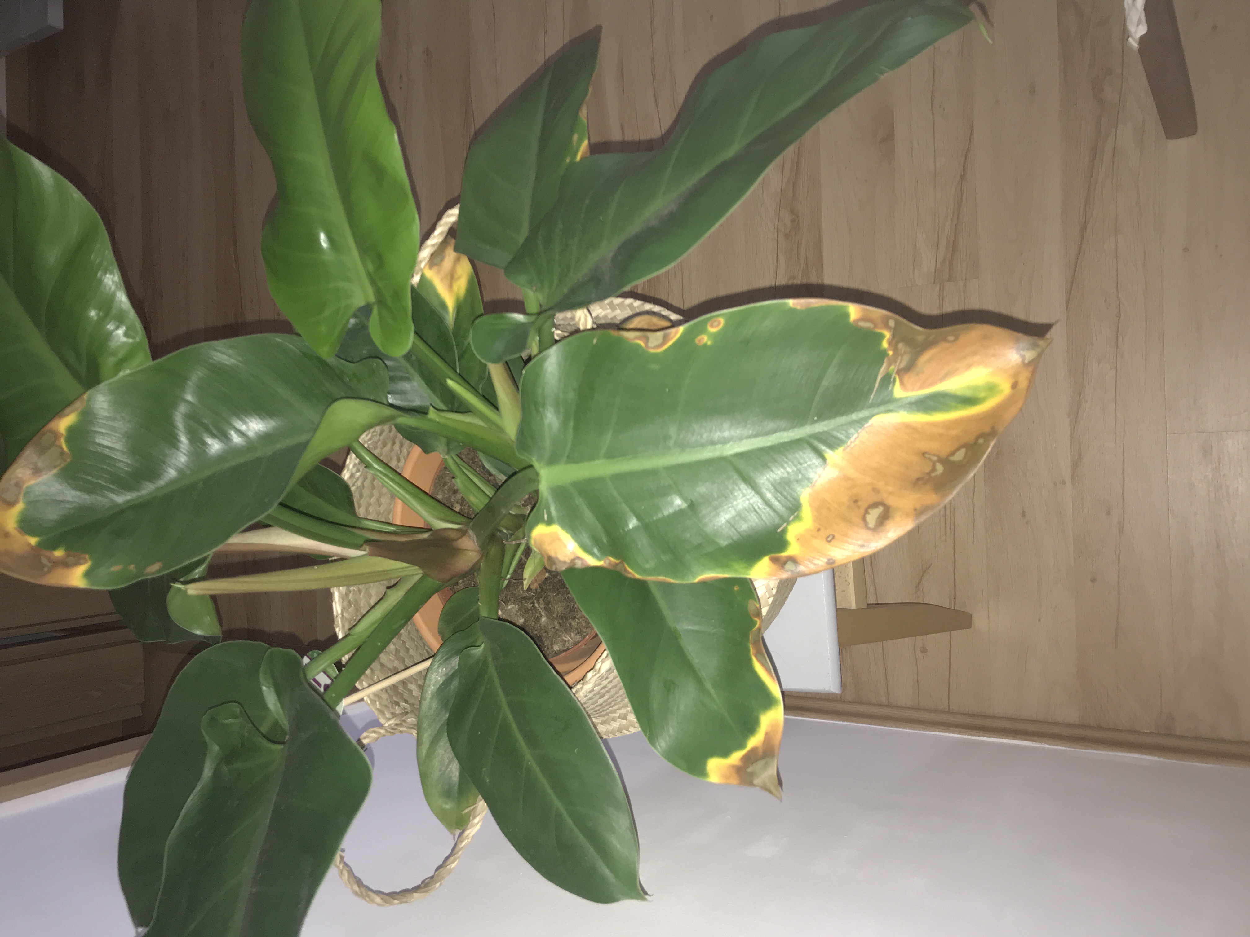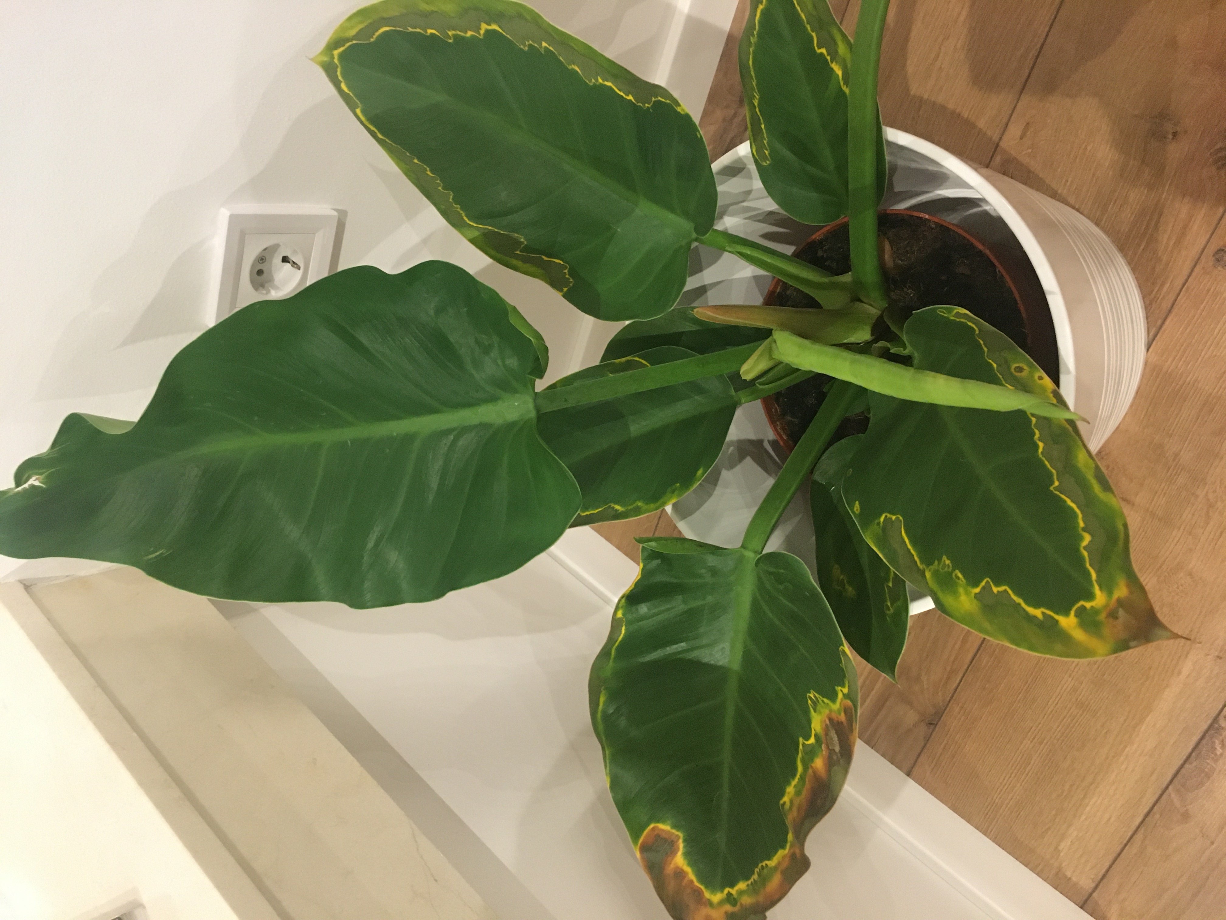Nem sokkal azután, hogy hazahoztam ezt a philodendront két levél elkezdett ilyen formában sárgulni, érdekesség hogy csak a levelek szélén. Más helyet kerestem neki, hátha azzal van a baj, de a sárgulás folytatódik egyre több levélen, közben viszont új levél is hajt. Vízet nem kap túl sűrűn, mert egyfolytában nedvesnek érzem a földjét, nincs közvetlen napfénynek kitéve. Mi lehet a gond?