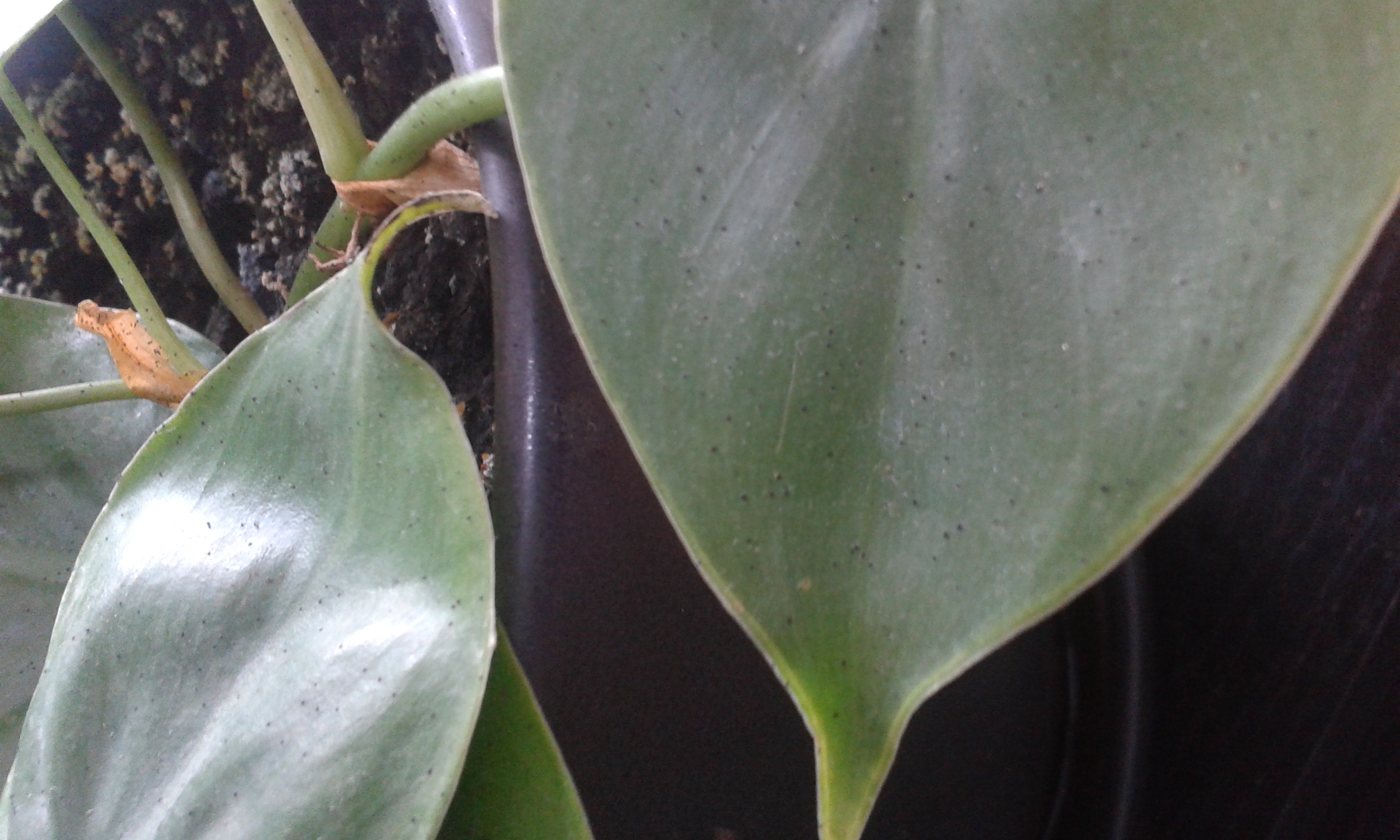 A kép nem adja vissza, majd próbálok még küldeni. A fekete por egyik napról a másikra lepte el a növényeket és környezetét. Főleg a philodendront lepte el, és azóta is megjelenik a friss hajtásokon, valamint a fonákon van belőle a legtöbb. Letörölni sem egyszerű, nagyon jól tapadnak a felszínhez. Először valami rozsdagomba képletre gyanakodtam, sajnos ilyennel nem találkoztam még.