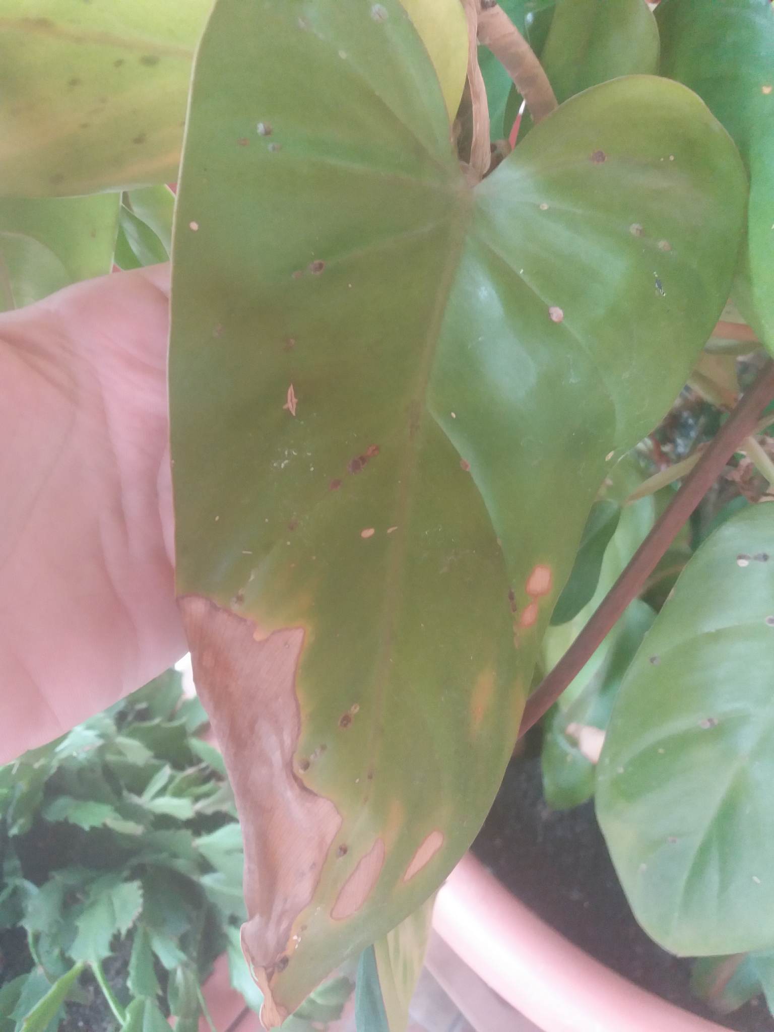 Pár hete vettem észre, hogy valami mintha nem lenne rendben a philodenronommal. Hetente 1-2x locsolom és havonta egyszer kapnak tápoldatot is. Nem olyan régen láttam, hogy valamilyen atka volt rajta ezért mospilannal permeteztem és most meglátom, hogy barna foltok jelentek meg rajta. Félárnyékos helyen tartom.