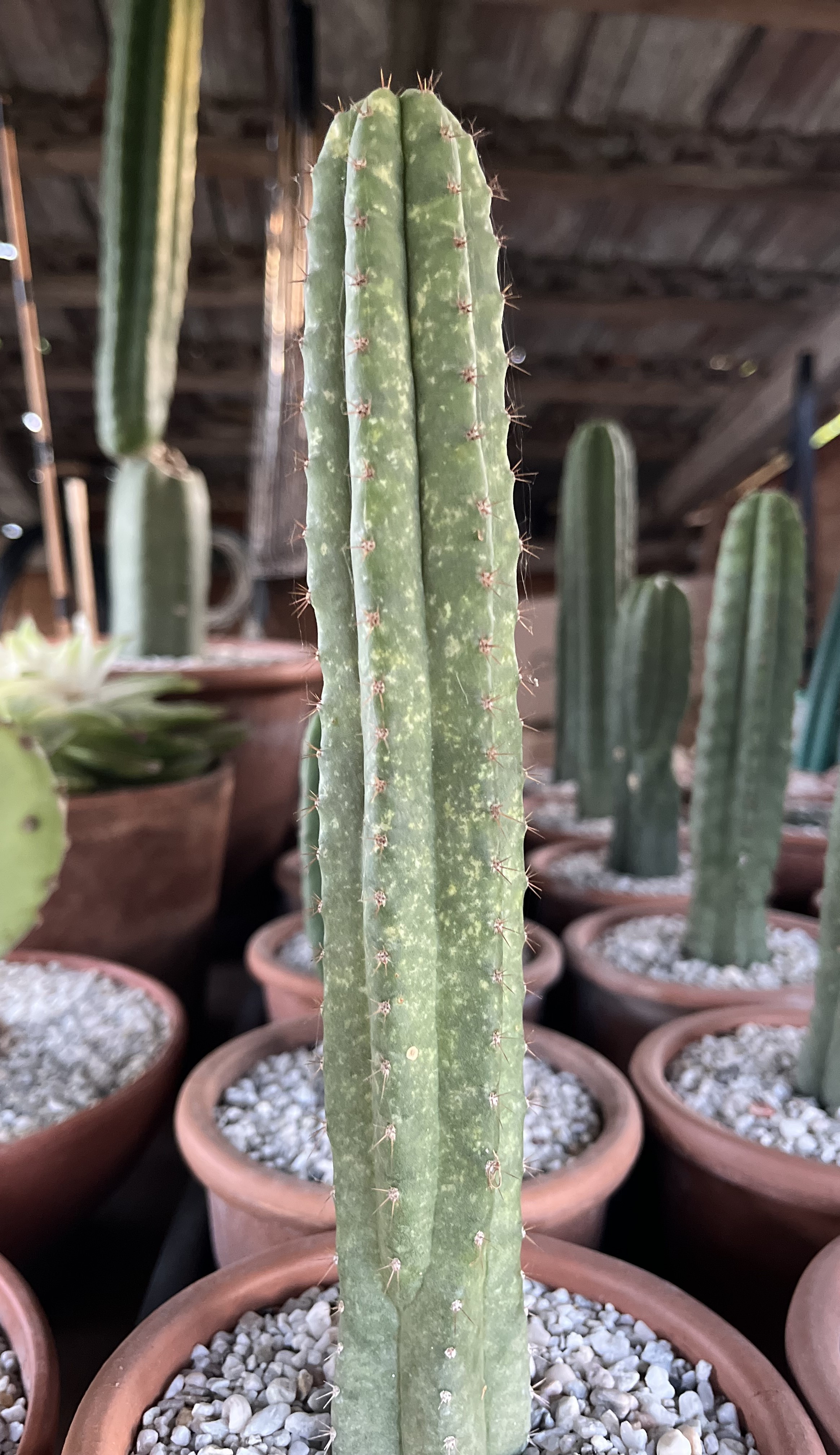 A mellékelt képen látható, a többi kaktuszom esetében is jellemző tünetek okát szeretném ismerni, amennyiben lehetséges, kezelni. A kaktuszok 3 éves csemeték, kezdetben hasonló problémákat nem tapasztaltam, jellemzően a tavalyi évben, még teleltetés előtt kezdtek megjelenni. A kaktuszok nyúlánkak, halvány, sápadtabb színűek, elszórtan apró sárgás foltokkal. Tűző naptól óvom őket, a nap felében kapnak napsütést, közvetlenül inkább a délelőtti órákban, utána inkább szórt fényt. Nagy átlagban 2 hetente öntözöm, nyári nagy melegben hetente, de csak ha földjük már teljesen száraz. Tenyészidőszakban 3-4 hetente tápoldatozok. Egész évben a szabadban vannak, télen elméletileg megfelelően és kellő ideig pihentetem őket és természetesen ebben az időszakban nem locsolom. Földjük kaktuszföld.
