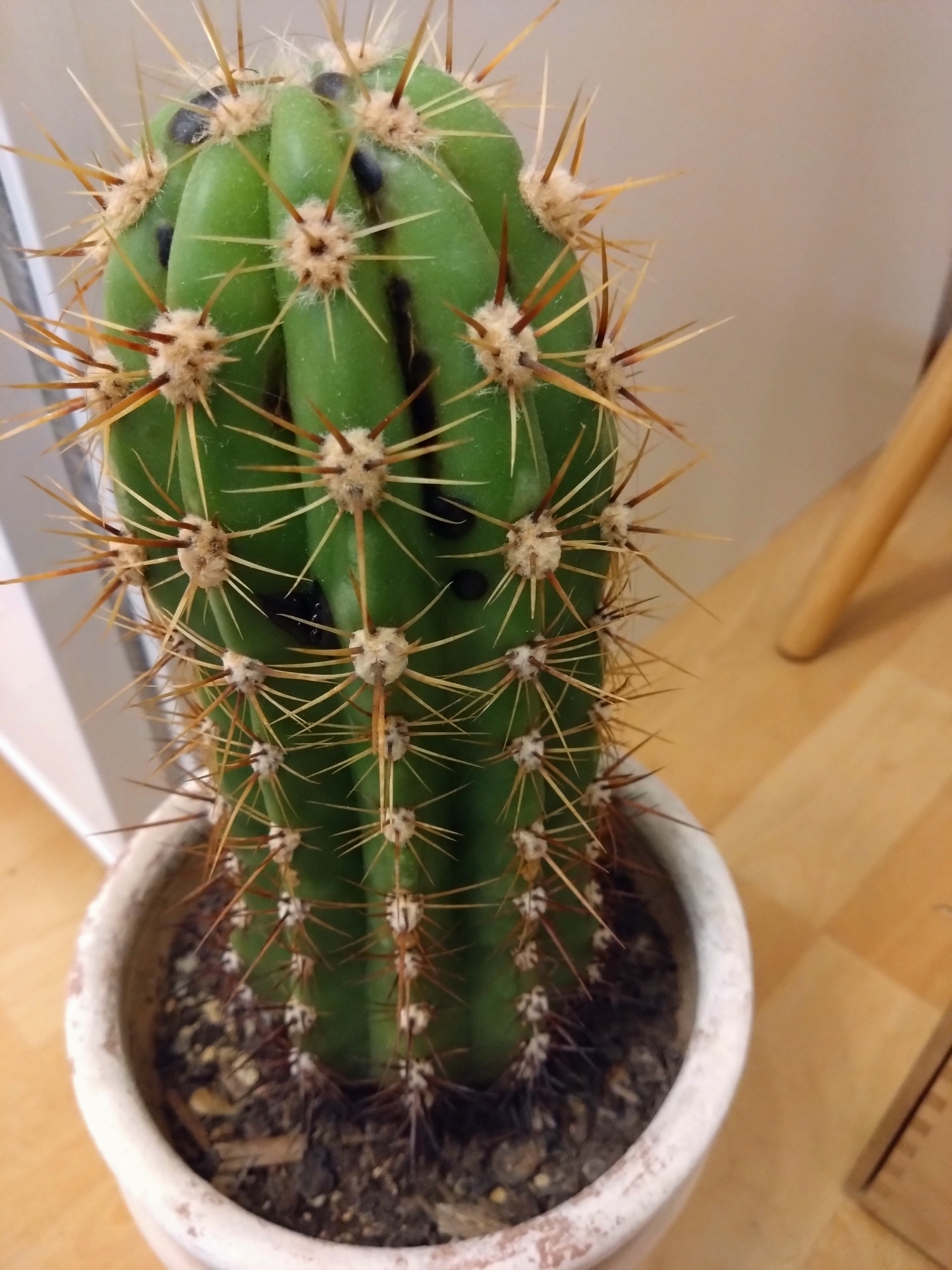Van egy többéves kaktuszunk, 2 éve vettük valakitől, eddig semmi probléma nem volt vele, úgy tűnt, jól érzi magát. Viszont körülbelül 3 hete fekete foltok jelentek meg rajta.