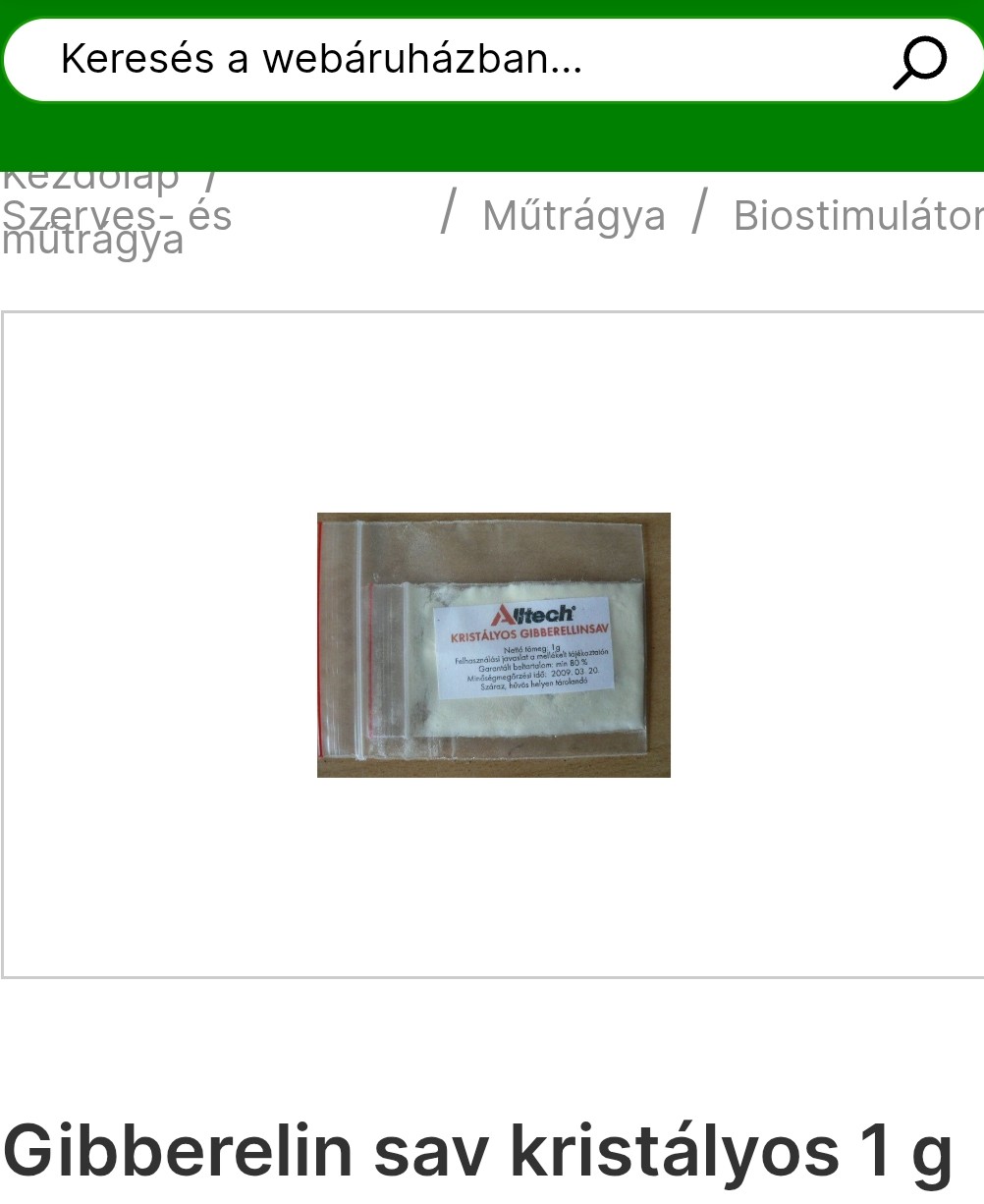 Kérjük, pontosítsa a honlapjukon eladó " Gibberelin sav kristályos 1 g” termékkel kapcsolatos információkat. Konkrétan, az Önök által forgalmazott gibberellin termék GA3, GA4 vagy GA4+7?