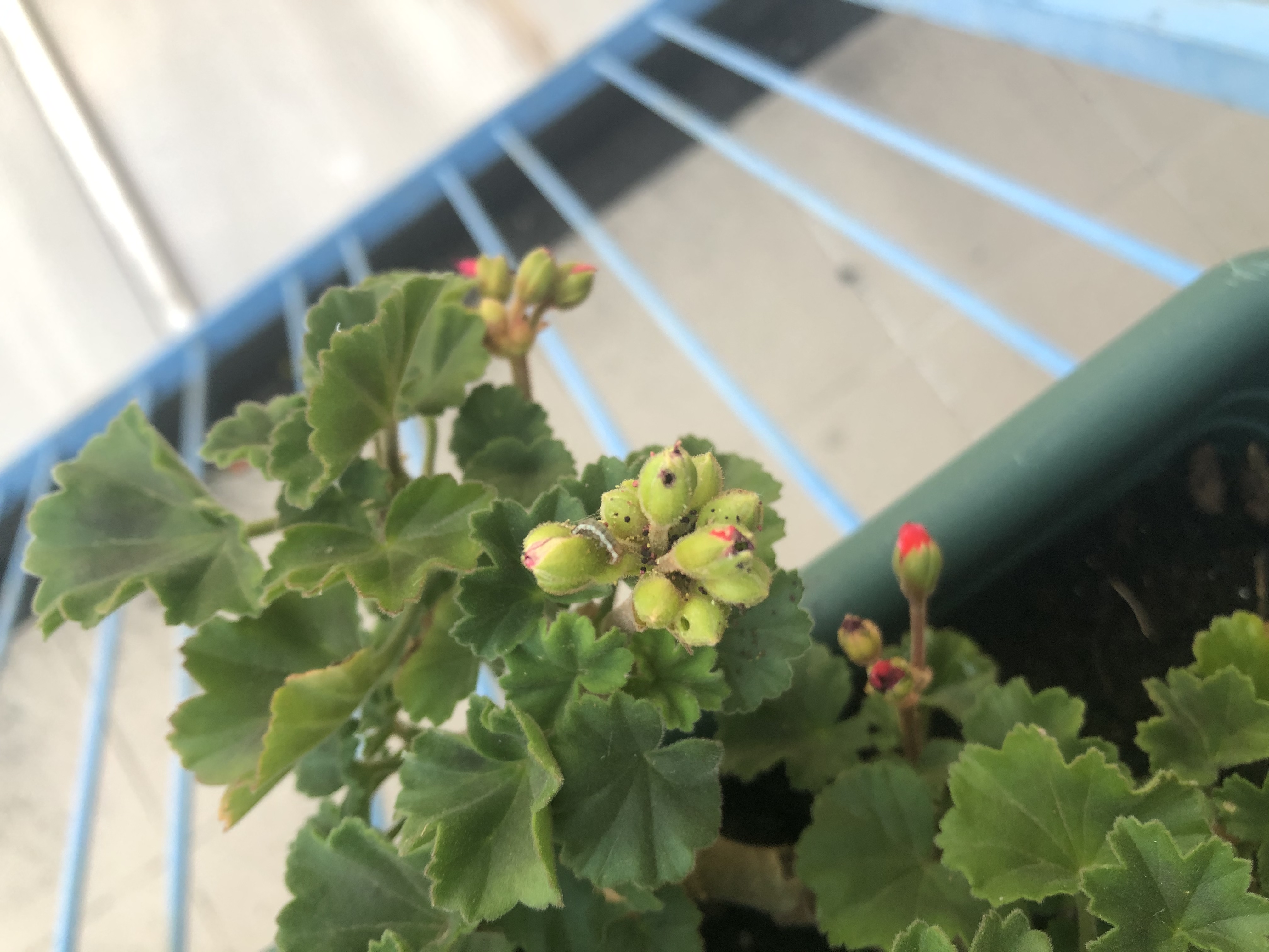 Jó napot, vajon mik ezek a fekete valamik a muskátlijaimon? Olyan, mintha valami ürülék lenne, de nem látok semmi élőlényt. Az összes virág szárad le, nem tud kinyílni az sem, amin nincs fekete valami. A levelek épek.