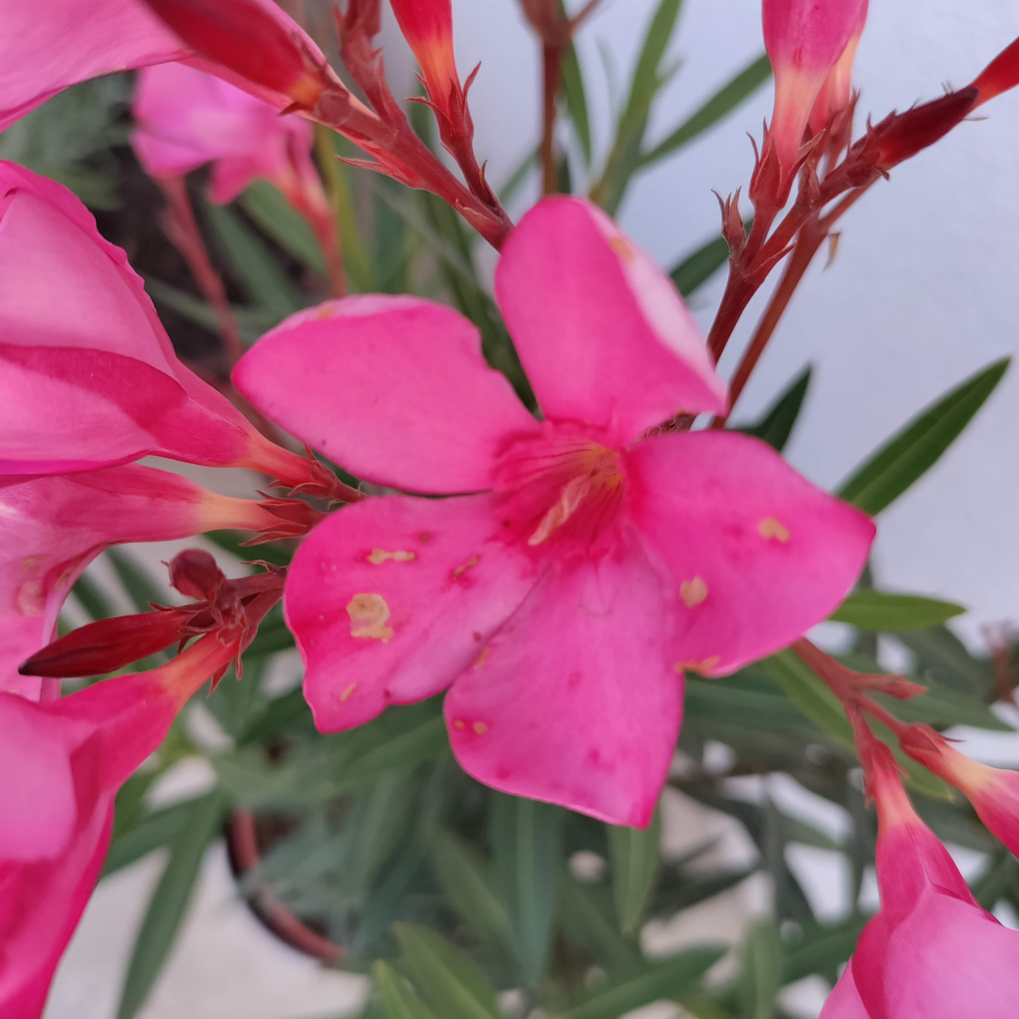 Leánderem eddig szépen fejlődött. Most ilyen foltok jelentek meg a virágain. Napos helyen van. Naponta egyszer locsolom. Tápoldatot nem adok neki. Átültetni már lehet, h kéne egy nagyobb cserépbe..