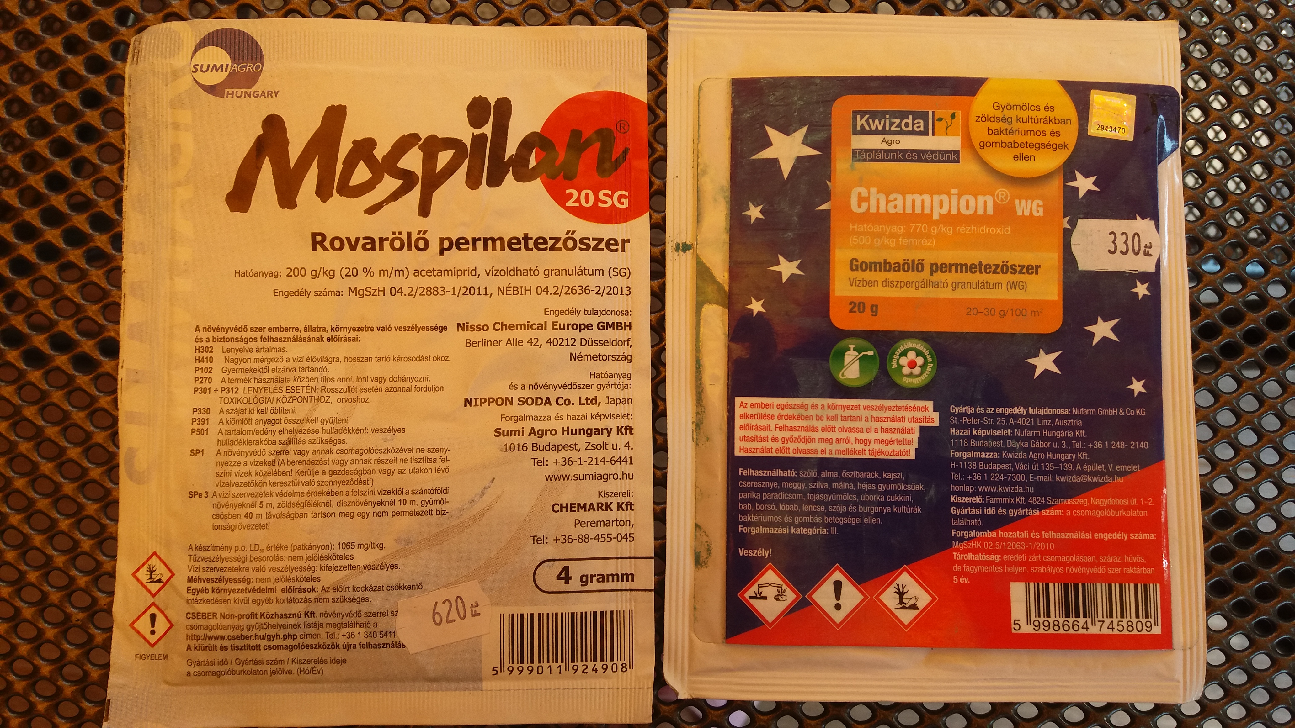Az ajánlott szerek (Mospilan és Champion) közül a Mospilan a szúró-szívó szájszervű kártevők (tetvek, poloskák) és az esetlegesen megjelenő rágó kártevők ellen is adhat(ott) némi védelmet, míg a Champion gombaölő, de ez utóbbi használatát nem igazán tartom indokoltnak, legalábbis a képeken látottak alapján. Ha sikerül a károsítók pontosabb azonosítása (további fotók küldésével), akkor a védekezés módját is pontosítani lehet. Mindamellett a megfelelő tápanyagellátásra és optimális öntözésre nagy hangsúlyt kell fektetni a későbbiekben.