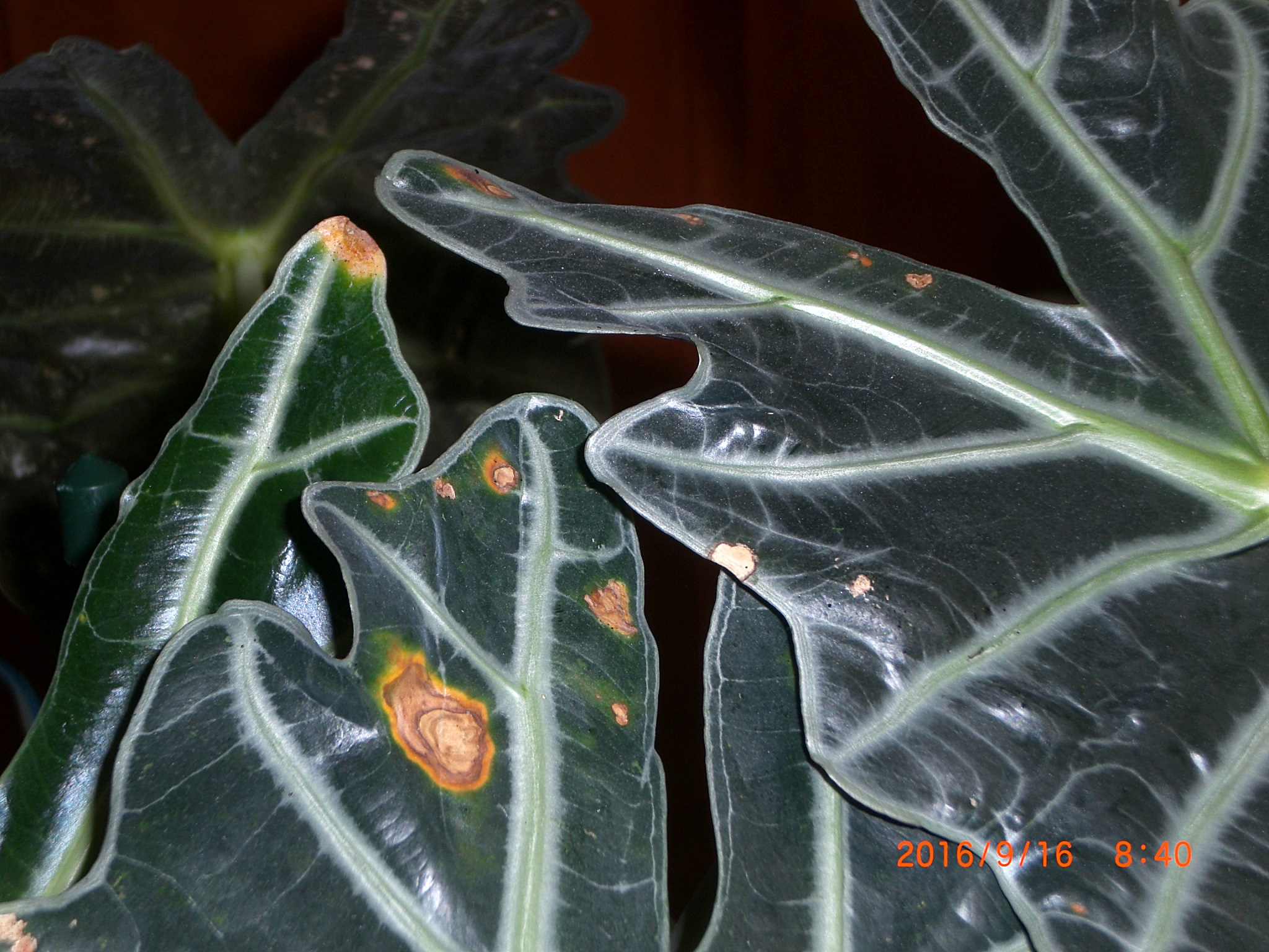 Egy idő óta az Alocasia Amazonica (ördöglevél) levelein sárgás-barna foltok jelentek meg (melyek egy idő után kiszáradásos képet mutatnak, néhány napon belül az új levélhajtásokon is megjelennek.