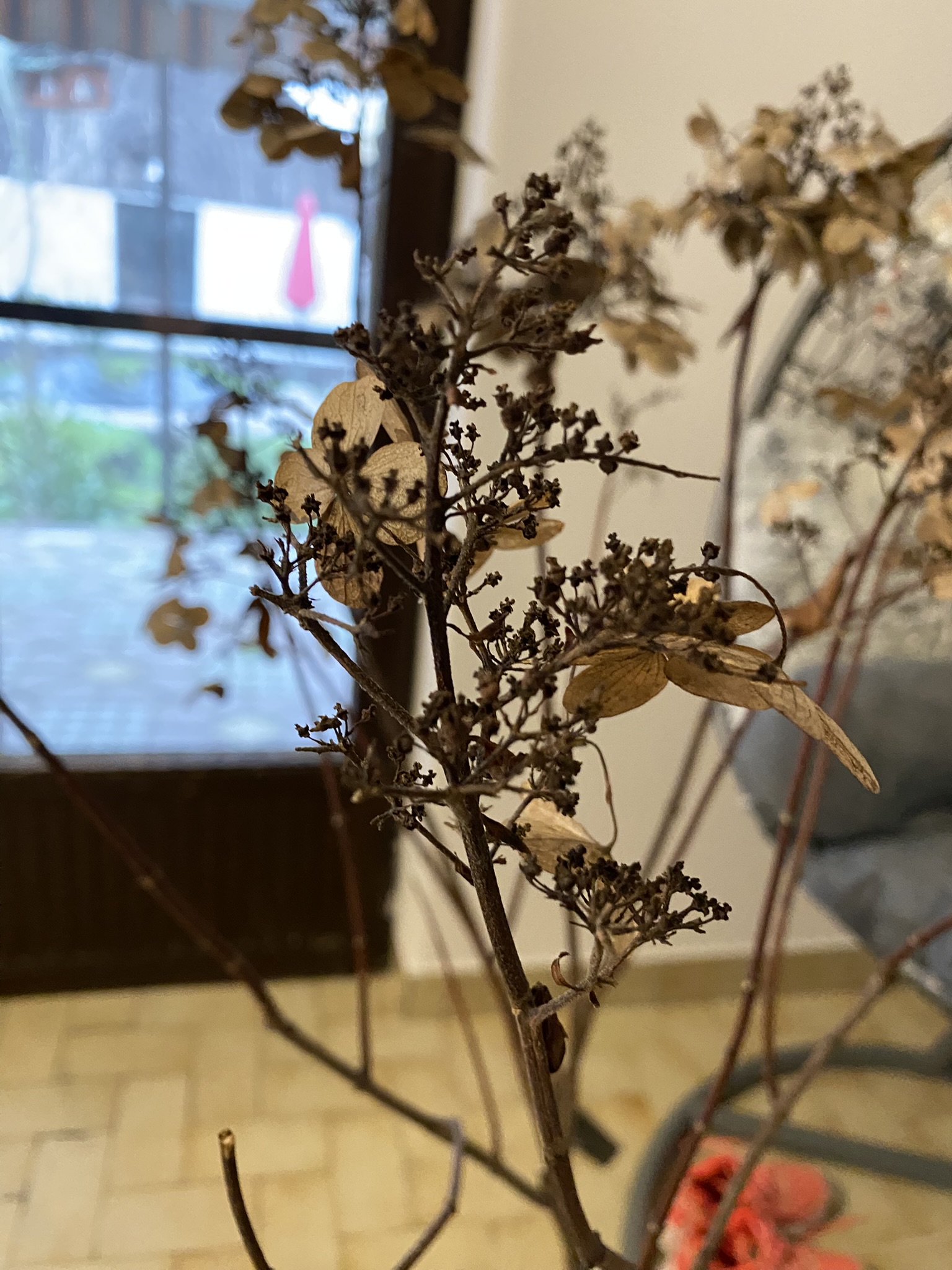 2024. júniusában vásároltam egy nagyon szép bugás hortenziát, amiről sajnos idő hiányában - felújítás - teljesen megfeledkeztem. Alkalomadtán öntöztem, de a cserepében hagytam egészen októberig, amikorra minden levelét eldobta már. Ezt követően bevittem a házba, ahol 24 fokos átlaghőmérséklet van és padlófűtés. A növény láthatóan él, szárai hajlanak, nem törnek, a szárakon, ahol általában ki tud hajtani (nem tudom a nevét) ott zöld színű.
