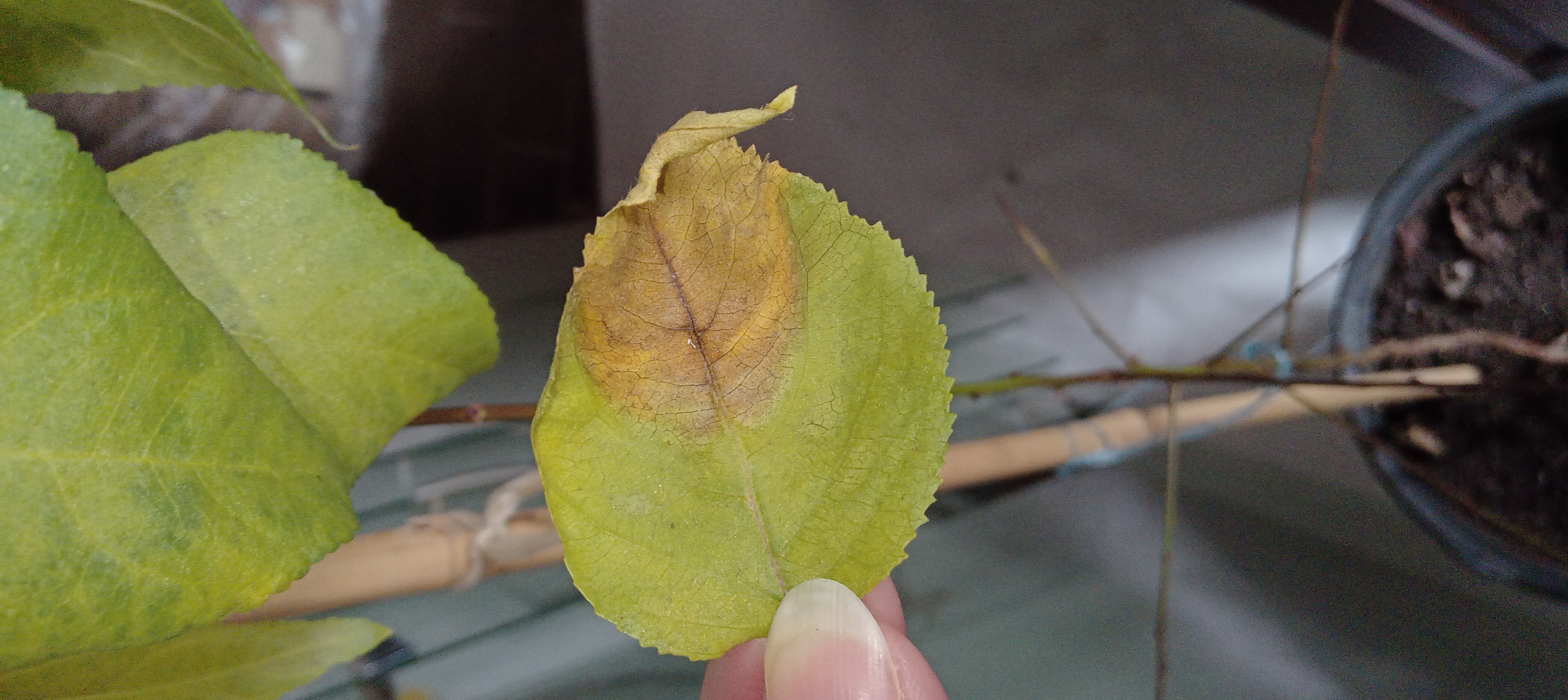 Van egy kis kajszi barack fàm és behoztam a hàzba mert még fiatal de valami baja van.
