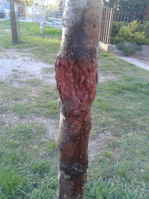 Hogyan lehet kezelni a fát hogy a mézgásodás megszűnjön. Úgy tűnik mintha már kevésbe folyna a mézga. A fa egyébként gyönyörű egészséges hajtásokat kezd hozni.