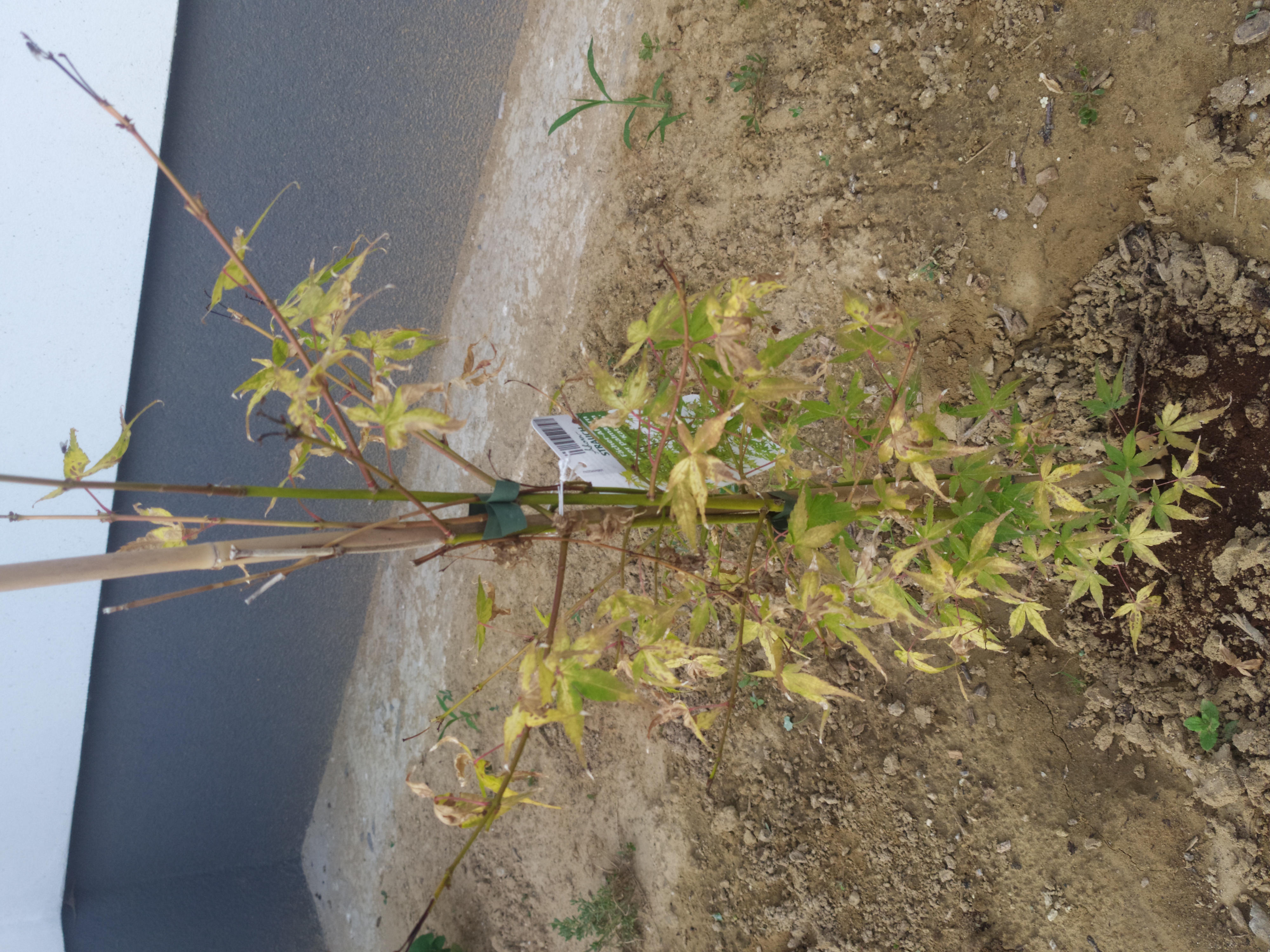 A japán juharon napperzselés látszik. A japán juhar félrányékos, párás helyet kedvel. Sajnos úgy tűnik, hogy az ön növényét tűzi a nap, és a ház fehér faláról visszaverődő fény rontja a helyzetet.