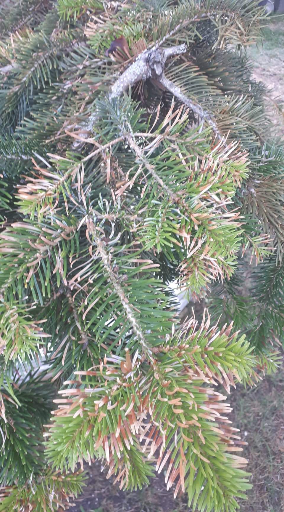 Az belső ágak száradásának több oka lehet. Legvalószínűbb a csapadék és főleg a légnedvesség hiánya. A fenyőfélék páraigényesek, a jelenleg tapasztalható "kontinentális sivatagi klímát" nem bírják. Száraz, kötött talajból a tápanyagot sem tudják felvenni.